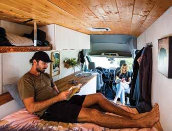 The vans have a queen bed (complete with a duvet, pillows and linens) above a storage area for things like sporting equipment, both conveniently accessible through the double back doors. Built-in cupboards come stocked with everything you need for cooking (pots, pans, knives, corkscrew, etc.) and washing up (tea towels, scrubbers, dish soap, etc.). The vans come with a cooler and an optional refrigerator add-on, along with a small sink with both fresh and grey water tanks. Unlike in larger RVs, there is no built-in stove — rather, each unit includes a portable camp stove to use outside the vehicle. The camper vans have multiple USB outlets for charging and a solar power system that provided more than enough juice for whatever we required over the week.