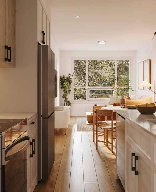 haven for outdoor enthusiasts. The Wildwood’s collection of 54 alpine homes, each with its own private deck, features one- to three-bedroom layouts inspired by Scandinavian interiors, giving them a sleek and modern look. With Rossland’s historic downtown only a sevenminute drive away, residents can set out for an exciting day of exploring the city’s rich arts and culture scene, its unique shopping opportunities and its dining and nightlife spots. redmountainhomes.ca