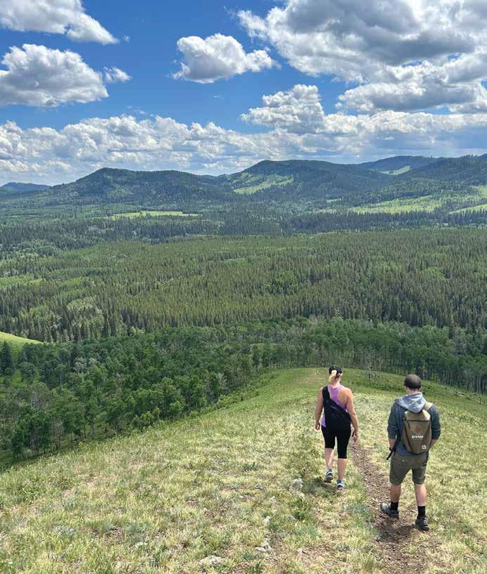 The Sheep River area is perfect if you like quieter trails that are quick to get to and visually rewarding. A staple in the area is Foran Grade, which straddles Bluerock Wildland Provincial Park and Sheep River Provincial Park. The ridge section of the hike features views both east and west with yodel-worthy looks at the chiselled peaks of Gibraltar Mountain, Mist Mountain and Mount Rae — in the heart of KCountry. Roadside parking is available at a couple of access points along Highway 546. Do this trail as an out-and-back or make it a loop that incorporates a section of Windy Point Trail and the road.