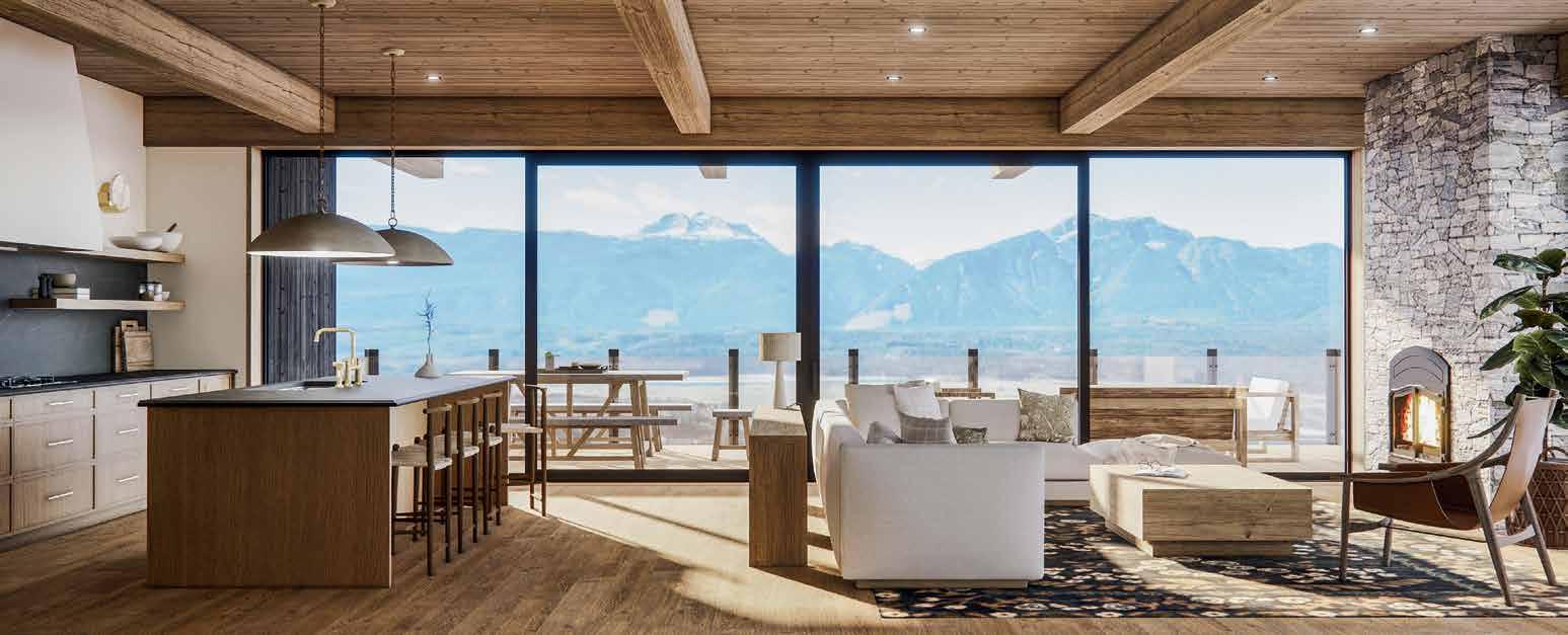 The Selkirks and Monashees at Mackenzie Village Situated right between downtown Revelstoke, the Revelstoke Mountain Resort and the future location of the Cabot Pacific golf course, this walkable neighbourhood is built for the outdoor enthusiast. Future residents can find their new mountain home at The Selkirks and Monashees, with a choice of townhouses, condominium apartments and penthouses, complete with communal rooftop gathering spaces to foster a community atmosphere. With contemporary designs and neutral-to-dark colour palettes, these residences feature modern, minimalist interiors that ooze subtle luxury. Each unit includes a private deck to relish the views. And, the homes are uniquely zoned for short- to long-term rentals, allowing buyers to use their investment for rental revenue.