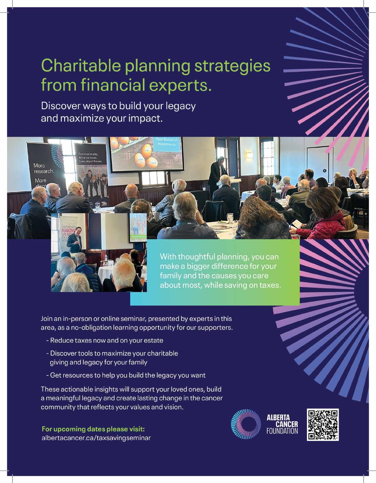And, of course, excellence is driven by brilliant minds committed to pushing the boundaries of what’s possible. In this issue, you’ll hear from researchers and clinicians across Alberta, including Dr. Kurian Joseph (pg. 30), who is focused on improving quality of life during treatment, and Dr. Khaled Barakat (pg. 22), who is developing next-generation immunotherapies in labs powered by donor support.