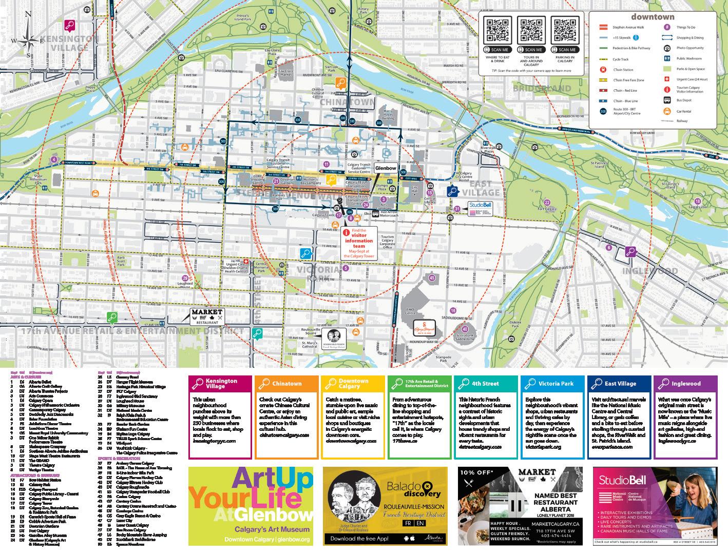 PLUS 15 : Par temps froid, Calgary dispose d’un vaste réseau Plus 15 de passages intérieurs suspendus qui relient bon nombre d’immeubles au centre-ville. On peut y accéder à partir d’endroits centraux comme The CORE Shopping Centre, Stephen Avenue, l’Hôtel de ville, the Calgary Tower et plusieurs hôtels. Plusieurs arrêts du CTrain longent ce réseau en plein centre-ville, comme le montre la carte.