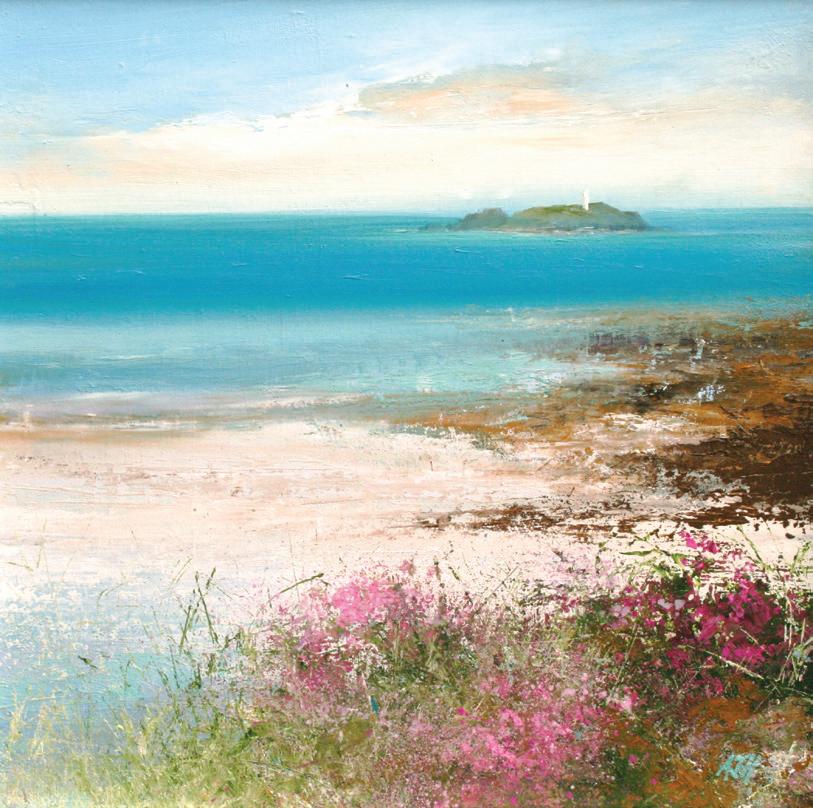 Sea Pinks at Godfrey Lighthouse, Cornwall 12 x 12 inches