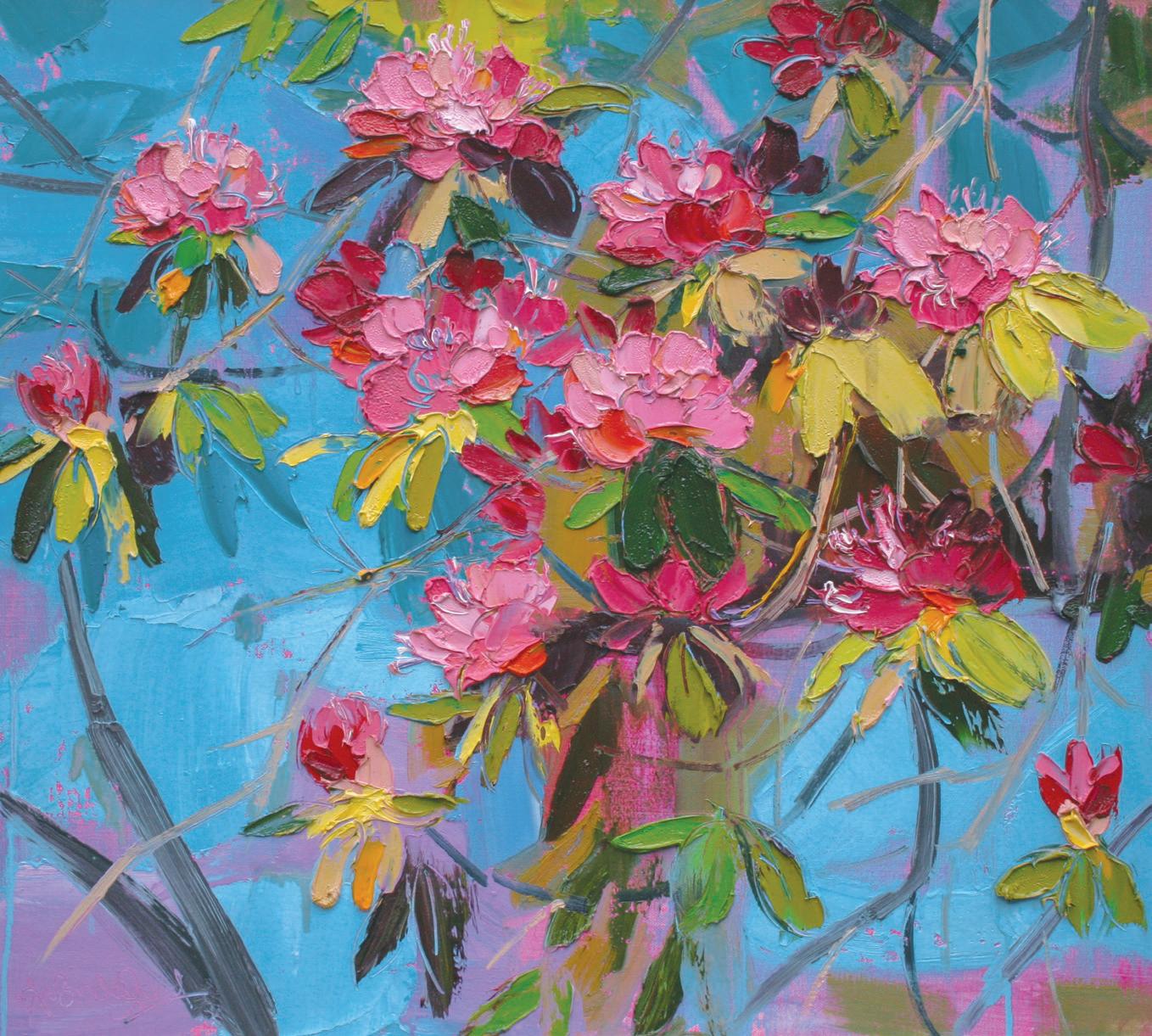Blue Summer Sky with Pink Rhododendrons 24 x 26 inches
