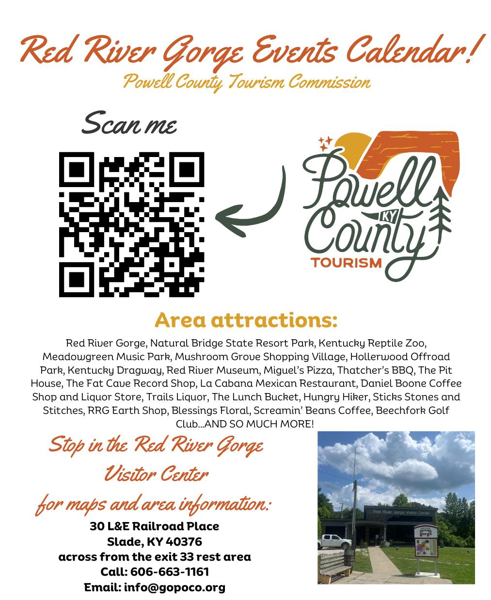• Red River Gorge Earth Shop Local Art gallery & Gift Shop 606.668.5228 Nat Bridge Rd. Slade