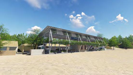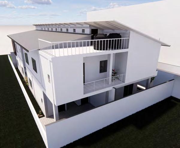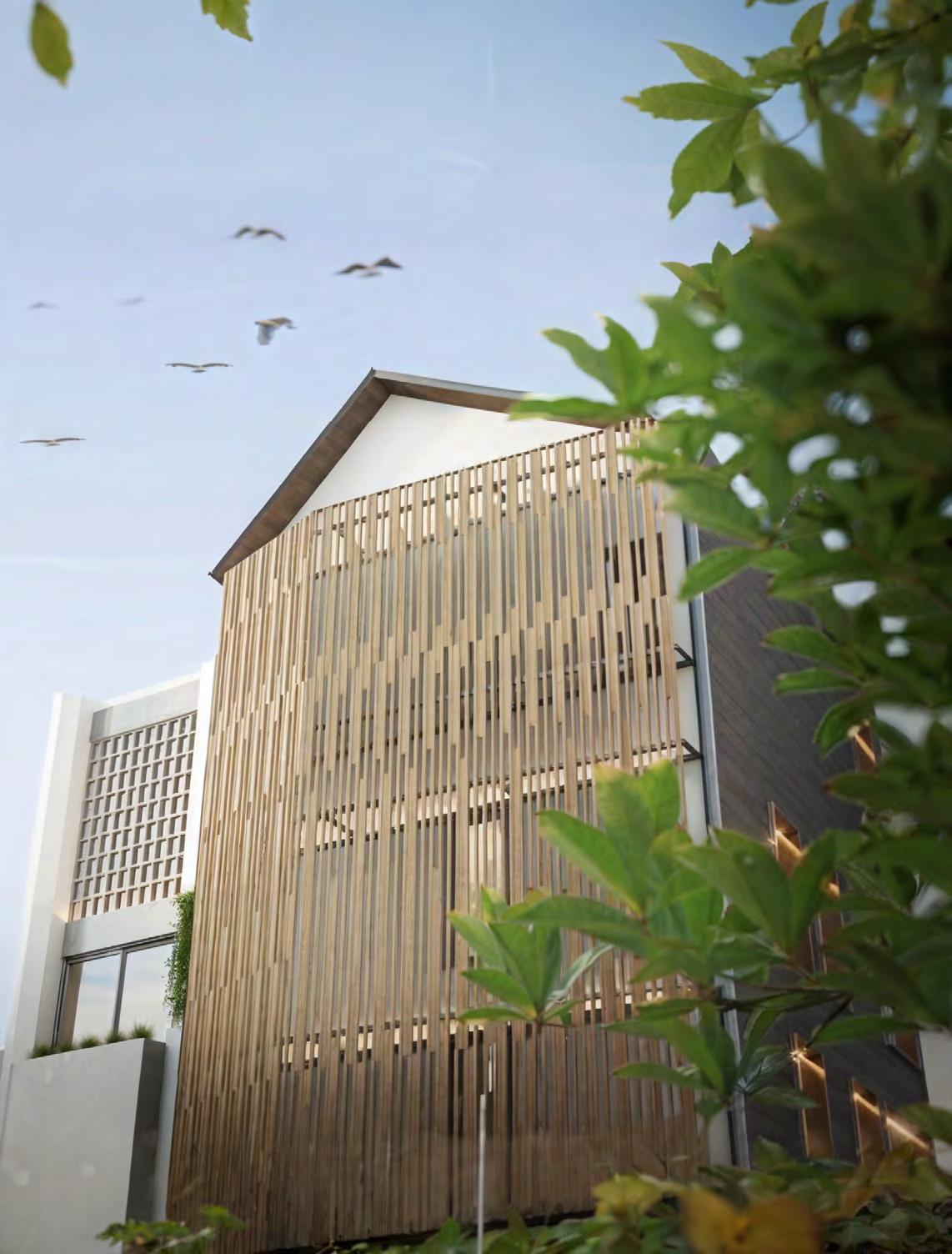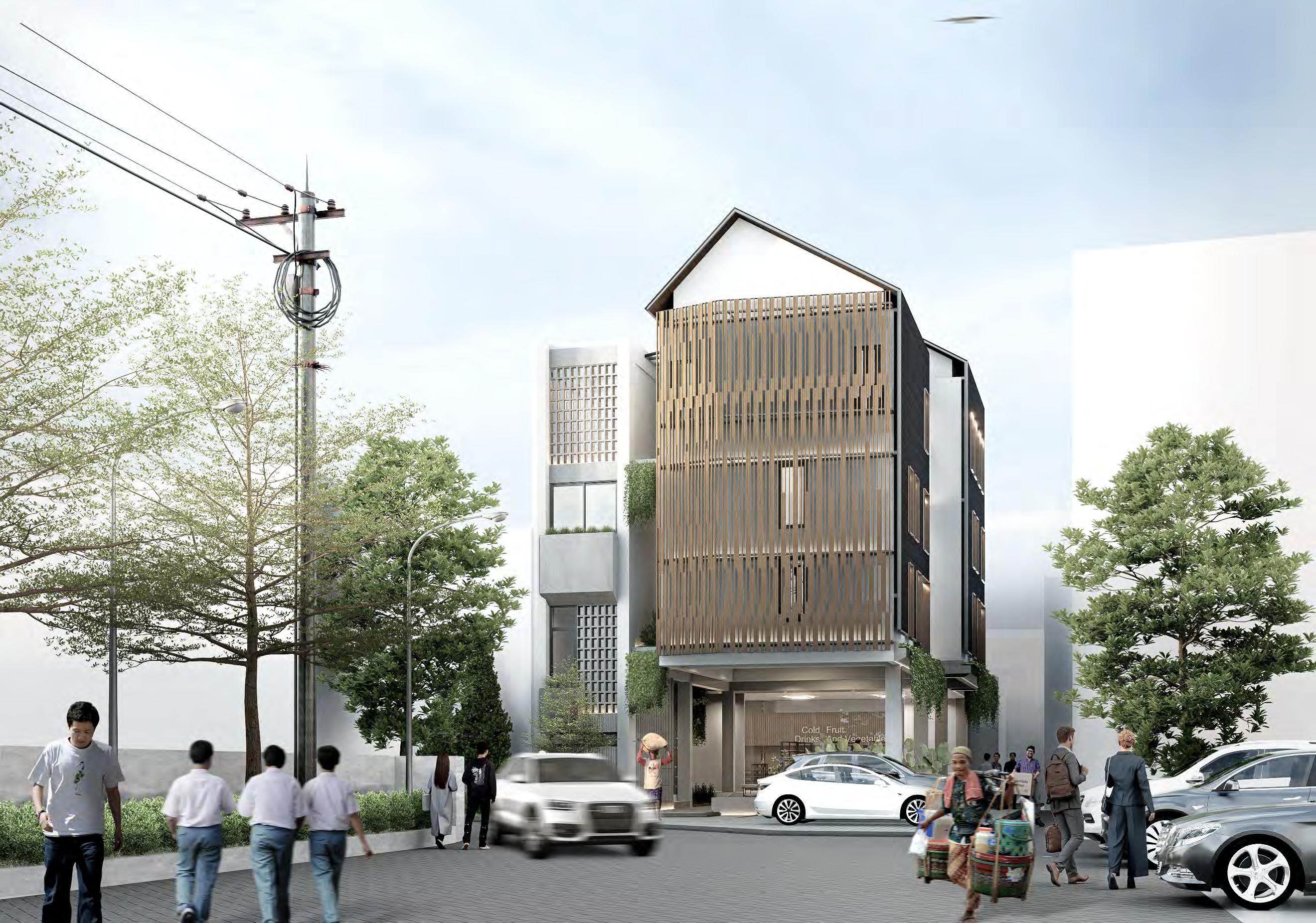 (4) Visualisasi bagian belakang bangunan bentuk atap split untuk memberikan akses pencahayaan untuk ruang di dalamnya. 1
