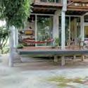 beranda yang dibatasi dengan vegetasi memisahkan ruang kendaraan dan ruang aktivitas masyarakat