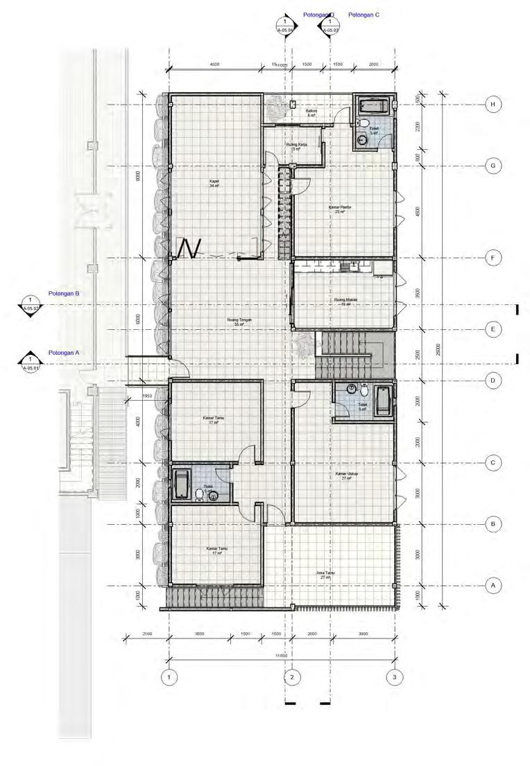 (4) Pada lantai 2 terdapat ruang khusus berupa kapel tempat doa pibadi pastor yang dapat juga difungsikan sebagai aula untuk kegiatan tertutup pastoran.