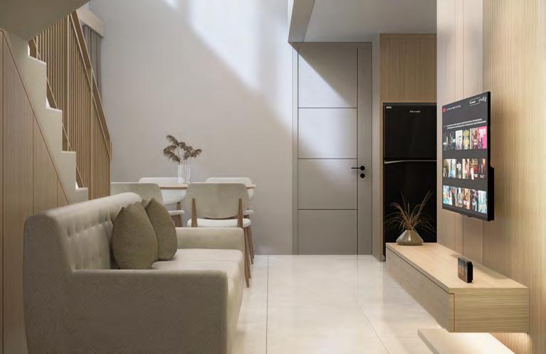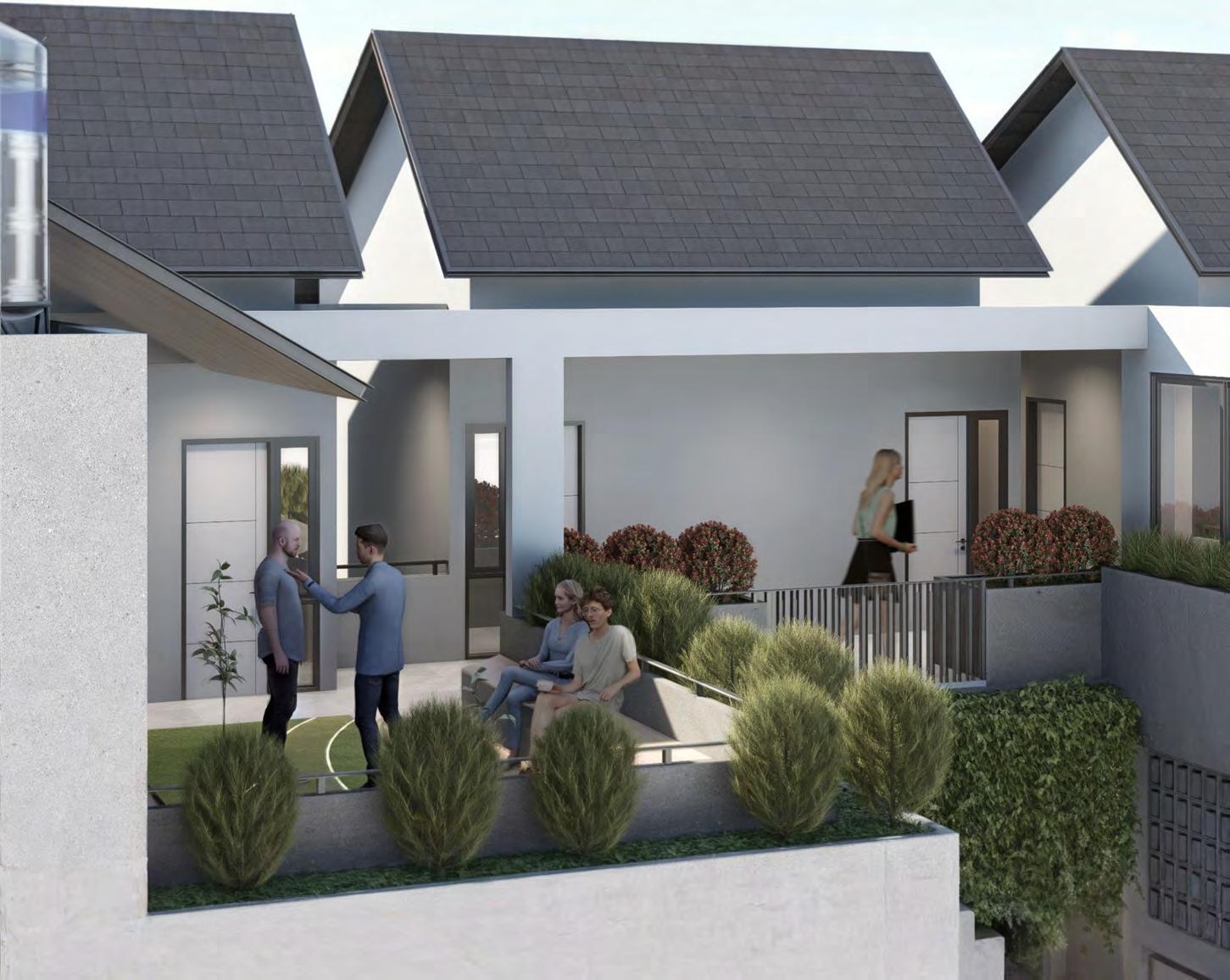 Area di depan pintu masuk setiap rumah ditempatkan teras semi privat