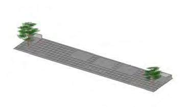 Perkerasan pada area parkir dan komunal didominasi dengan perkerasan grass blok yang dapat memaksimalkan peresapan air ke tanah dan disertai penghijauan pada area lantai perkerasan