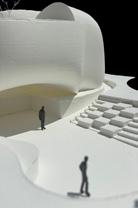 Create a Guggenheim ramp up through the building and sunken outdoor space for intimacy.