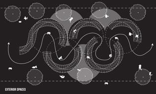 Distribute recreational center program within the former grid system.