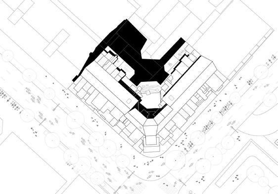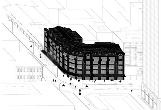 Subtract from new facade to create attractive views within the building.