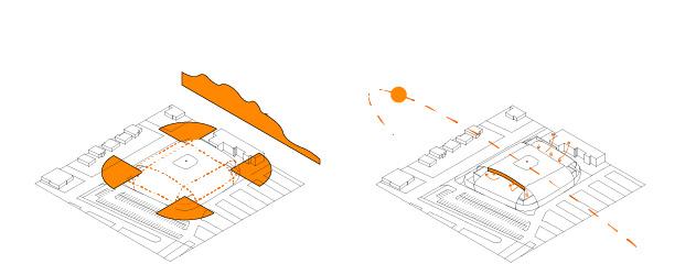 Create access routes for nearby communities amd landscape to invite everyone into the building.