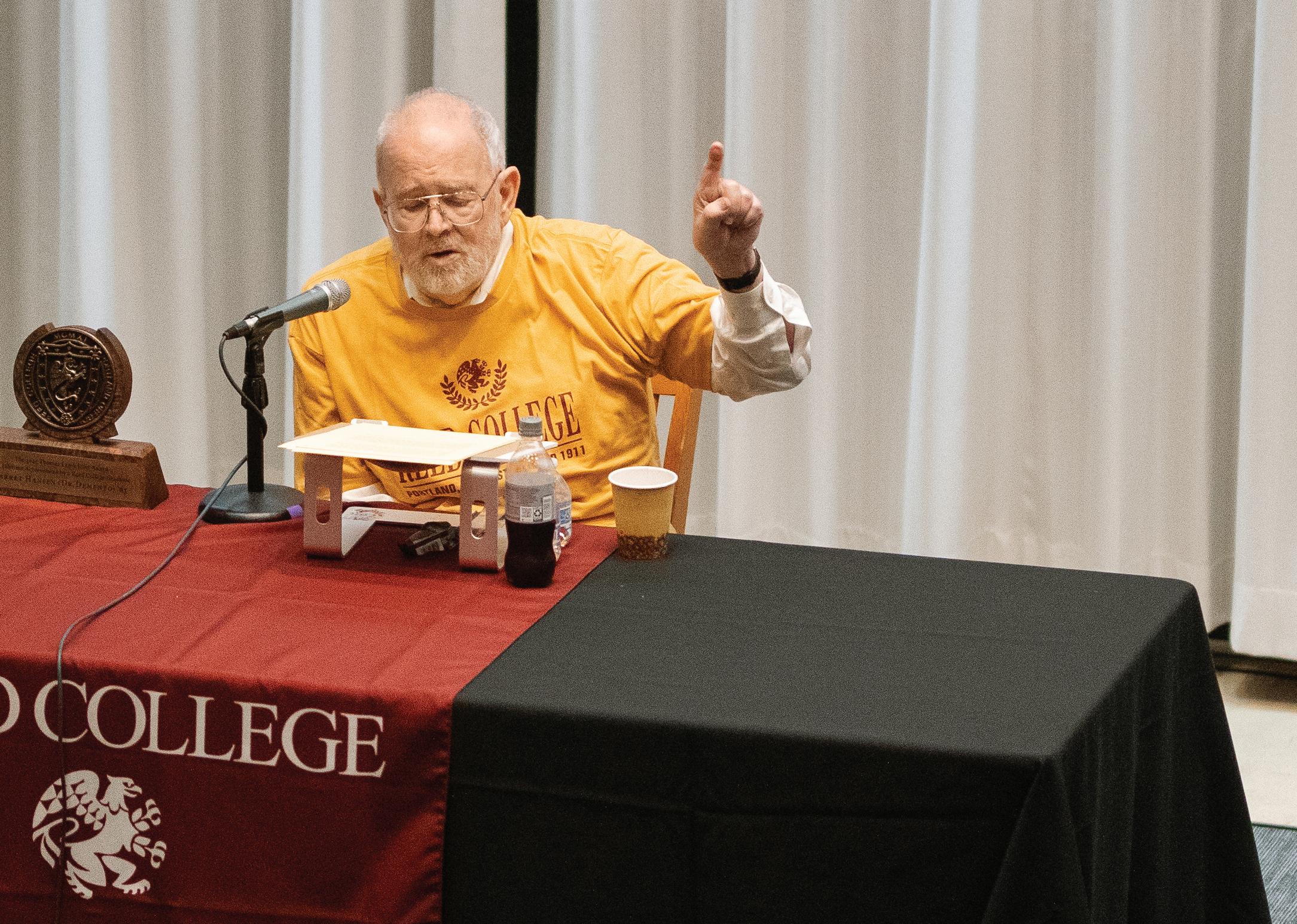 On October 9, 2025, Barry was awarded the Thomas Lamb Eliot Award for Lifetime Achievement by a Reed College Graduate and presented a lecture titled “Dr. Demento: A Century of Comedy” in Vollum. It was a breakneck voyage through a history of tomfoolery—and a testament to the radical power of goofiness that he celebrated on his show.