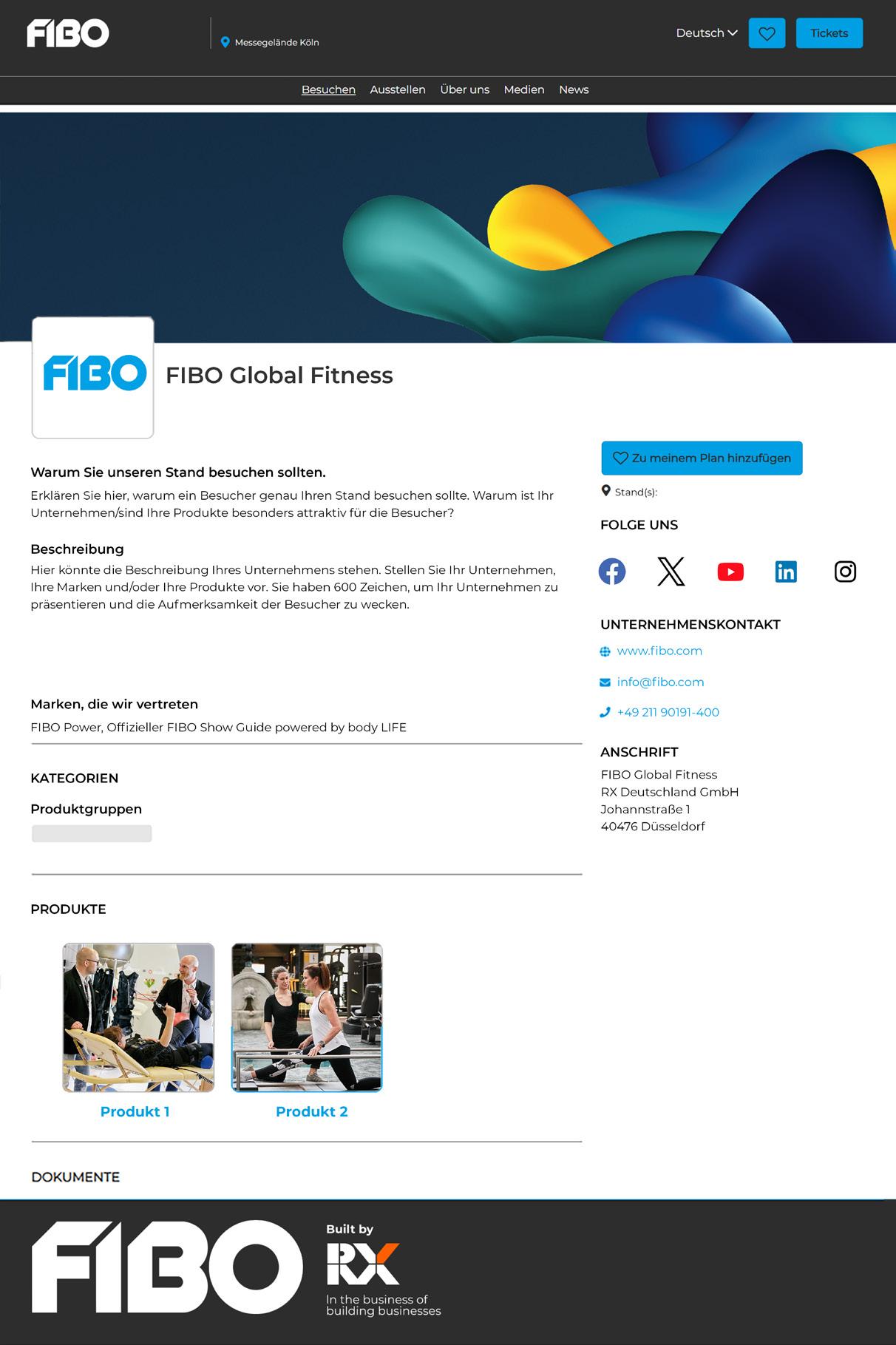 Die Ausstellerverzeichnisse sind die primären Informationsquellen für Besucher und Interessenten der Messe. Generieren Sie mehr Aufmerksamkeit mit einem attraktiven Ausstellerprofil als Grundbestandteil Ihres Marketingpakets. Dadurch schaffen Sie mehr Sichtbarkeit auf der Messe-Webseite, eine bessere Auffindbarkeit in den Suchmaschinen und erhöhte Wirkung Ihres Messeauftritts. Sie können Ihr Ausstellerprofil mit den für Sie wichtigen Informationen, Messeneuheiten etc. befüllen und dadurch potenzielle Kunden von sich überzeugen.