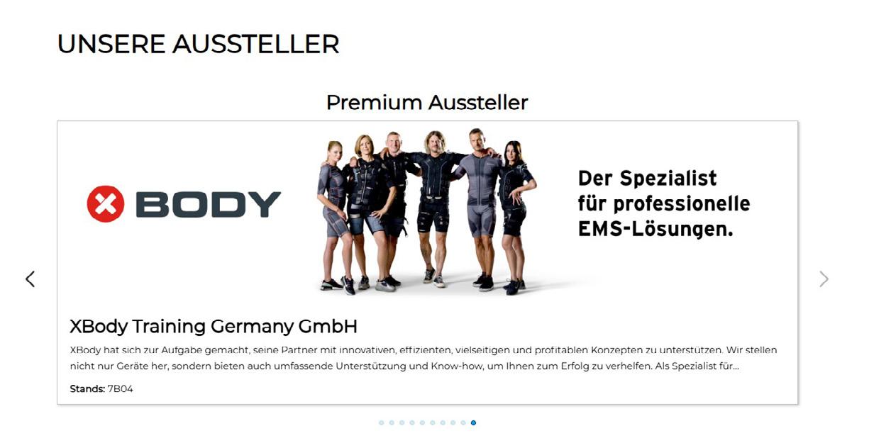 – Sponsoring einer Produktkategorie zu Beginn der Ausstellerliste inkl. „Premium“-Label – Banner im Banner Karussell auf der Startseite der Messe-Webseite