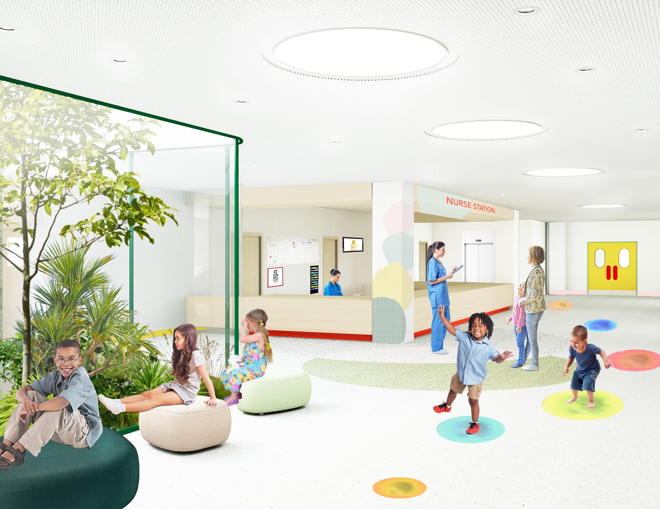 Inspired by the sporadic growth of vegetation in select areas throughout the desert landscape of Kuwait, the Pediatric Opthalmology Center will implement multiple indoor