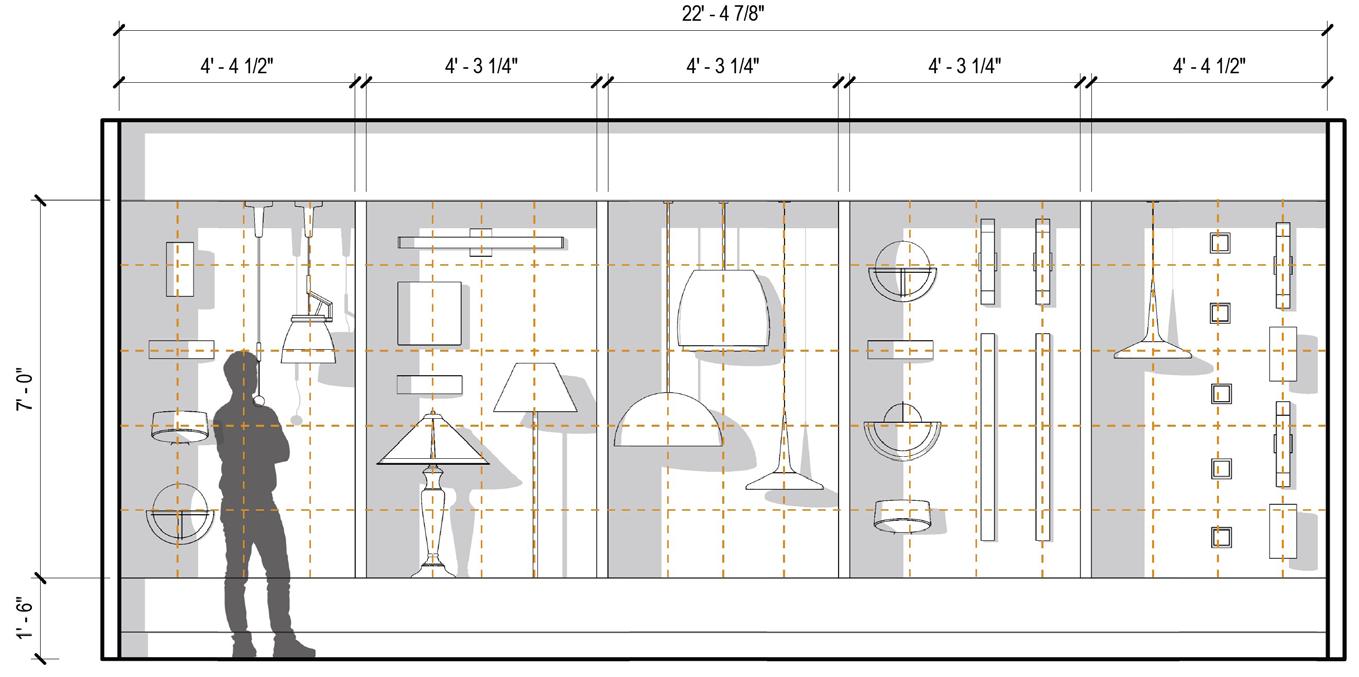 dimensional art, as though a visual narration of the phases in which Eve was created. Each display is distinguished by different colored linear strips placed to indicate to the user that he / she is entering a new phase of Eve’s creation. Placing this art gallery within a university district that has two strong programs in the Arts, will mean that the gallery will be constantly revisited by both university students, incoming students, professors, and local families. With both Ithaca College and Cornell University in close proximity, students are able to discover the changing exhibits within Art Made Gallery throughout their university careers.