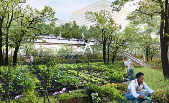 garden spaces that serve as self-sustaining ecosystems, working to harvest energy to maintain themselves and fuel the surrounding activities.