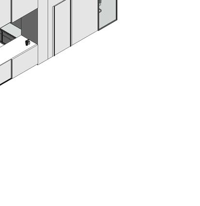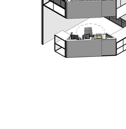 A103 1 Reception Desk Elevation 1a A103 2 Reception Desk Elevation 2a A103 3ElReceptionDesk evation3a A103 4 Reception Desk Elevation 4 - a 5 A103 8" 1" 2' 5" 1/2" 2' 1/2" 15' 4" 7' 1/2" 10" 10" 5' 0" 2' 11" 1' 7" 11' 11" 9' 0" 9 -1 Operable swinging door towards the back allows receptionist to enter behind the desk, without disrupting the overall reception desk design. The door is made out of plywood covered in Brite White Formica laminate in matte Kick space underneath reception desk allows protection of the exterior panels from damage. Made out of plywood covered in 909 Black Formica laminate in matte finish. Structural wall allows the top component of the reception desk extra structural support on one end. Will be used surface to display signage systems. Gypsum Wall boards are installed between the recepetion desk area and the medical record room and are painted in Bauwerk Colour Bleached Structural frame behind the recepetion desk is composed on stainless steel framing, where plywood. Counter tops and exterior faces of the reception desk are made out of plywood wrapped in Brite White Formica laminante. This laminate contributes to LEED points, FSC certified wood, Green Guard certified, and contains recycled content. The laminate covering suitable to be used in healthcare Steelcase height-adjustable Air touch desks are provided to the employees in the medical record room to ensure staff have the option of sitting or standing. Lowered part in reception desk is ADA complaint with counter height of 34". Top component of reception desk consists of a steel frame structure wrapped in gypsum board painted in structural frame is suspended from the ceiling and is latched on both ends to structural walls in order to reassure stuctural integrity. Second layer of plywood covered in Brite White Formica laminate is attached on certain panels in order to show integrated graphic symbol. Exposed edges of the second layer of plywood, have integrated LED linear strips that outline the graphic symbol represented in the reception desk design. Remaining counters are transaction height of 42". Bottom base of top component of reception desk contains integrated LED lighting covered with 3Form to create diffused lighting above the counter spaces. 3/16" = 1'-0" 1 Plan -Reception Desk 2 Axon View -Front 7 Cut Axon of Reception Panels 0' 1/2" 0' 2" 2" 5' 8" 3" 1' 7" 0' 2" 12' 0" 9" 10" 1/2" 12' 8" 6' 4" 10 1/2" 1" 1/2" 2' 10" 11' 10 1/2" 6" 12' 0" 10" 9" 1/2" 11 1/2" 2' 11" 7' 9" 1' 7" 4' 1/2" 7" 6' 7 1/2" 2' 1/2" 4' 0" 4' 11 1/2" 4' 10" 12' 0' 1/2" 0' 1/2" 0' 1/2" 6' 7 1/2" 1/2" 4' 4" 2' 11" 7' 7 1/2" 3/16" = 1'-0" 1 Reception Desk Elevation 1 -a 3/16" = 1'-0" 2 Reception Desk Elevation 2 -a 3/16" = 1'-0" 3 Reception Desk Elevation 3 -a 3/16" = 1'-0" 4 Reception Desk Elevation 4 -a 0' 1/2" 0' 2" 3' 6" 3' 6" 12' 0" 9" 4' 10" 1/2" 12' 8" 6' 4" 10 1/2" 1" 1/2" 0' 2' 10" 11' 10 1/2" 12' 0" 4' 10" 3' 6" 9" 1/2" 4' 11 1/2" 9' 1" 9' 1" 6' 7 1/2" 6' 7 1/2" 2' 1/2" 4' 0" 11 1/2" 10" 12' 3' 8" 0' 2" 6' 7 1/2" 1/2" 4' 4" 2' 11" 7' 7 1/2" 3/16" = 1'-0" 1 Reception Desk Elevation 1 -a 3/16" = 1'-0" 2 Reception Desk Elevation 2 -a 3/16" = 1'-0" 3 Reception Desk Elevation 3 -a 3/16" = 1'-0" 4 Reception Desk Elevation 4 -a 0' 1/2" 3' 6" 9" 1/2" 4' 10 1/2" 5' 1" 4' 9 1/2" 0' 1" 11' 10 1/2" 12' 0" 4' 10" 3' 6" 9" 1" 6' 1/2" 6' 1/2" 7 1/2" 4' 0" 2' 9" 11 1/2" 10" 12' 3' 8" 0' 2" 0' 1/2" 0' 1" 1/2" 0' 1" 0' 1" 1/2" 0' 1/2" 0' 1/2" 0' 1/2" 1/2" 0 1/2" 0' 1/2" 1/2" 6' 1/2" 6' 1/2" 2' 9" 2" 10" 6" 3' 3 1/2" 4' 4" 2' 11" 12' 0" 7' 1/2" 10' 1/2" 0' 11" 2' 10" 1' 10" 3/16" = 1'-0" Reception Desk Elevation 1 -a 3/16" = 1'-0" Reception Desk Elevation 2 -a 3/16" = 1'-0" 3 Reception Desk Elevation 3 -a 3/16" = 1'-0" 4 Reception Desk