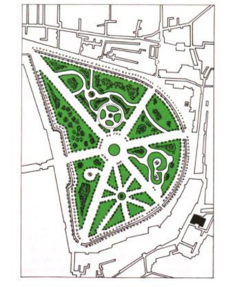 Figure 7. Plan of Azbakiyya park in 1846, designed by Murton Bey funder Muhammad Ali’s reign. (Behrens-Abouseif, Doris. Azbakiyya and Its