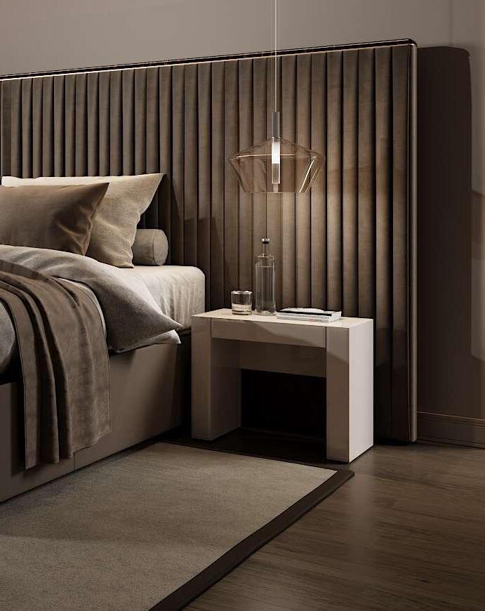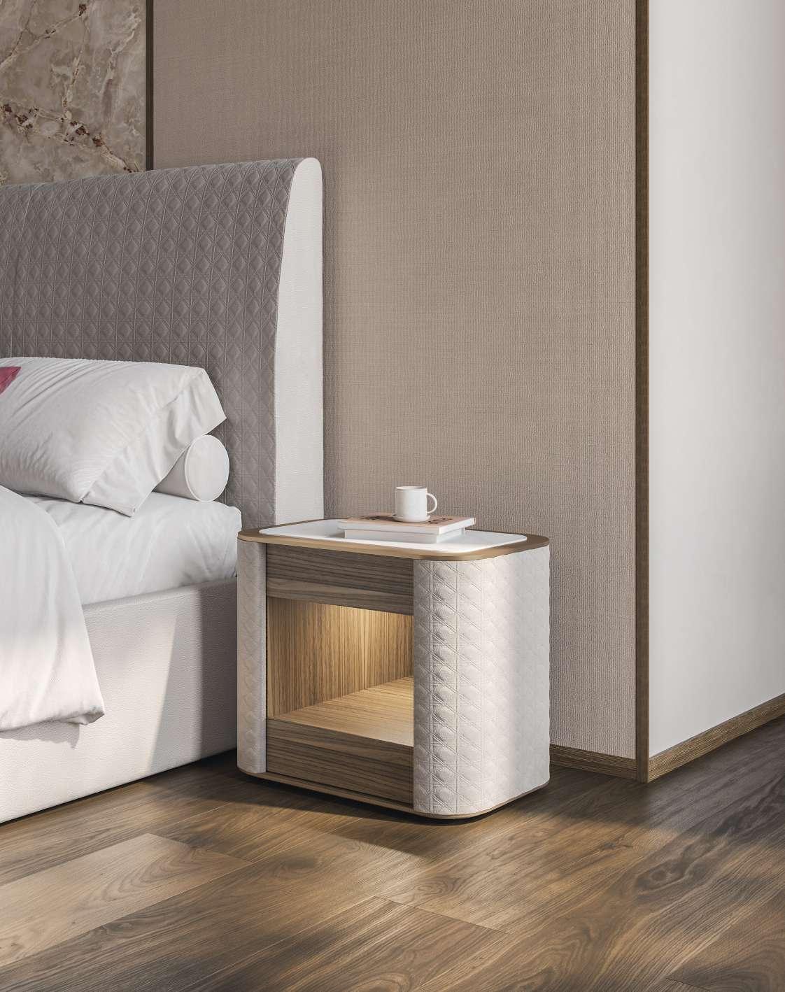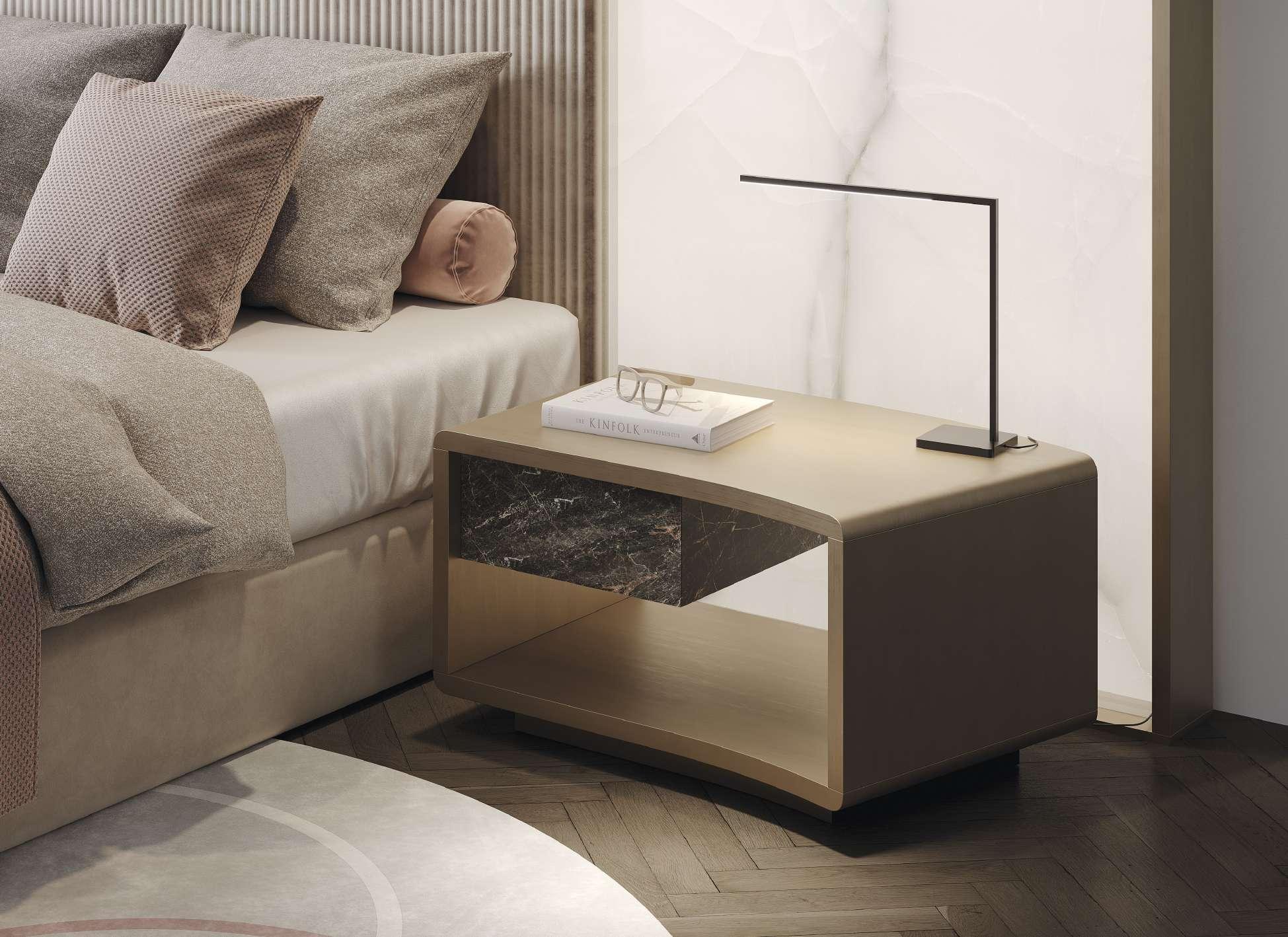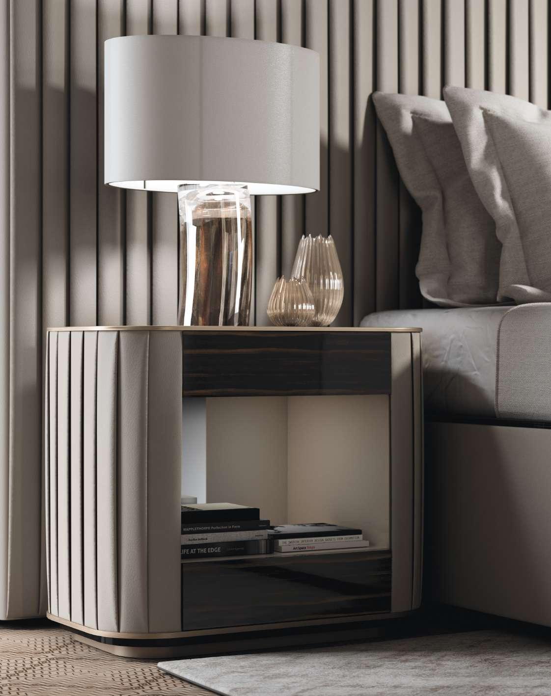 Bedside tables in Nabuk Grigio and 100M Bronze details