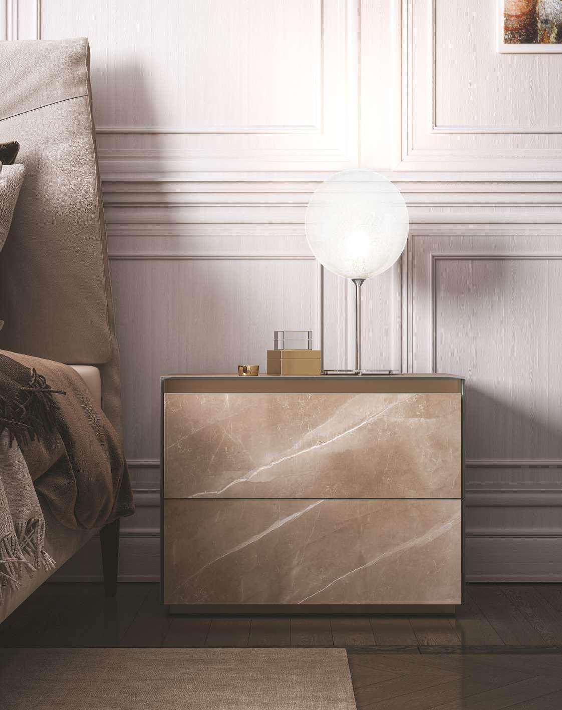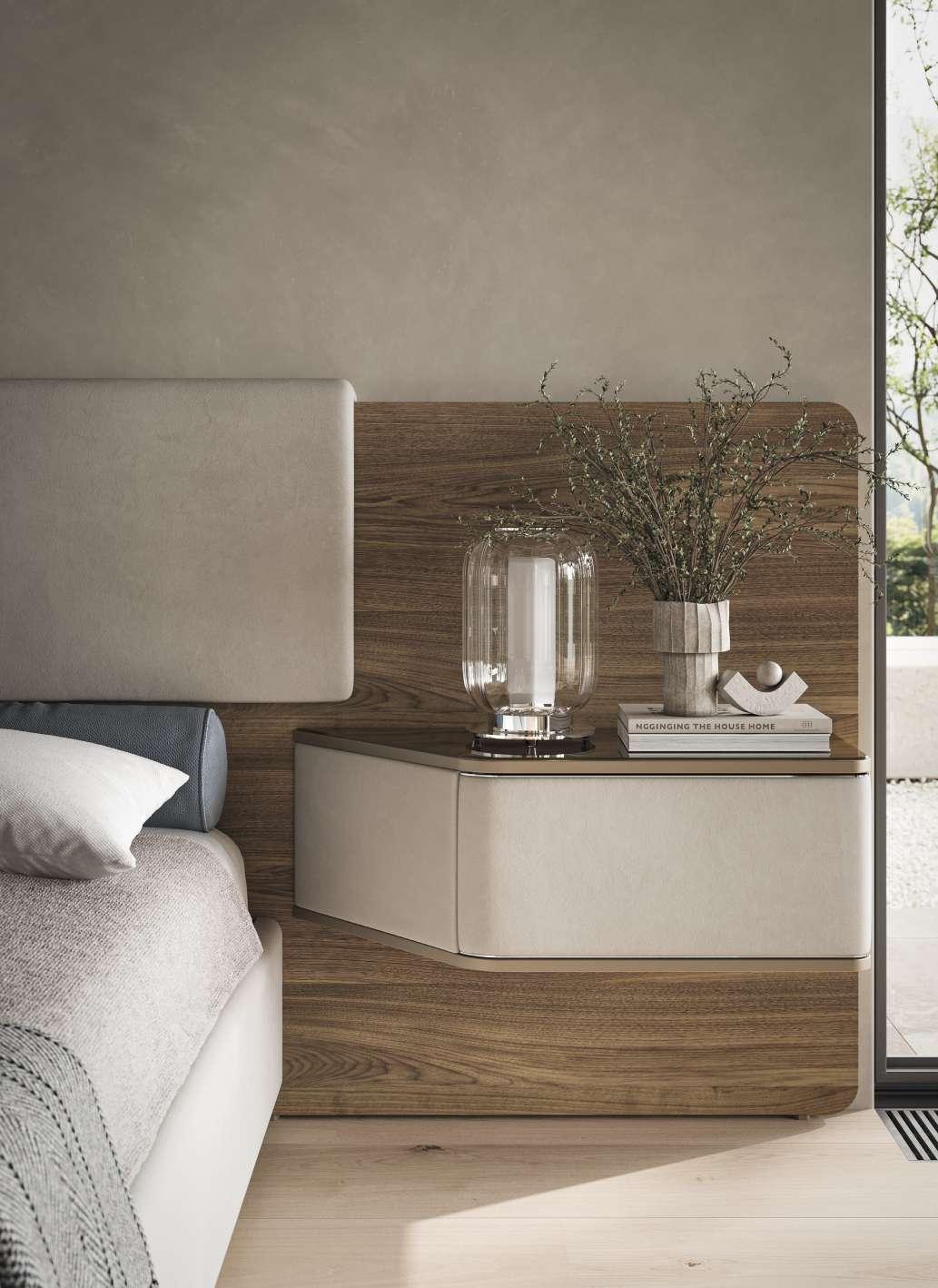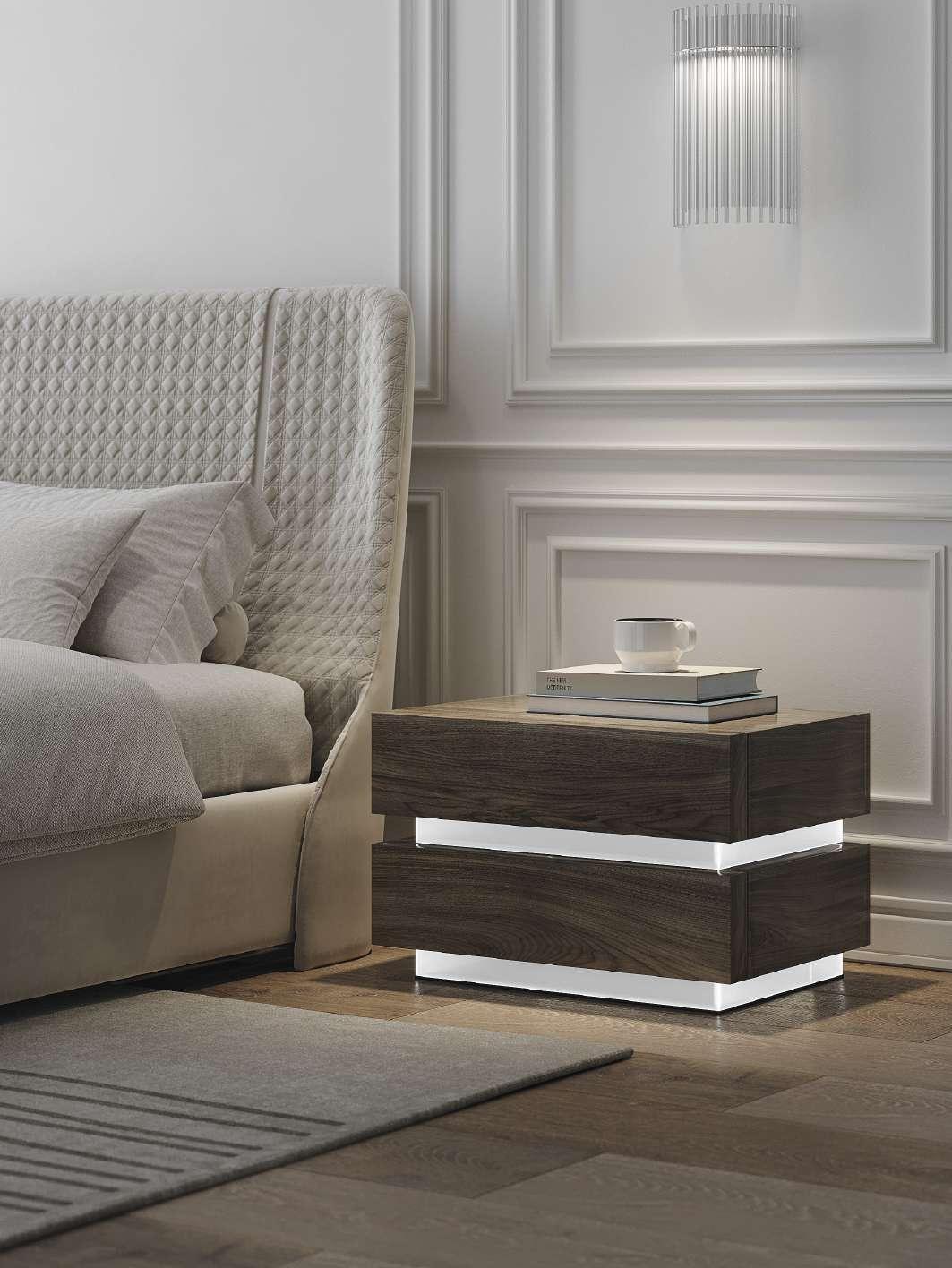 Bedside tables in Nabuk Grigio and 100M Bronze details