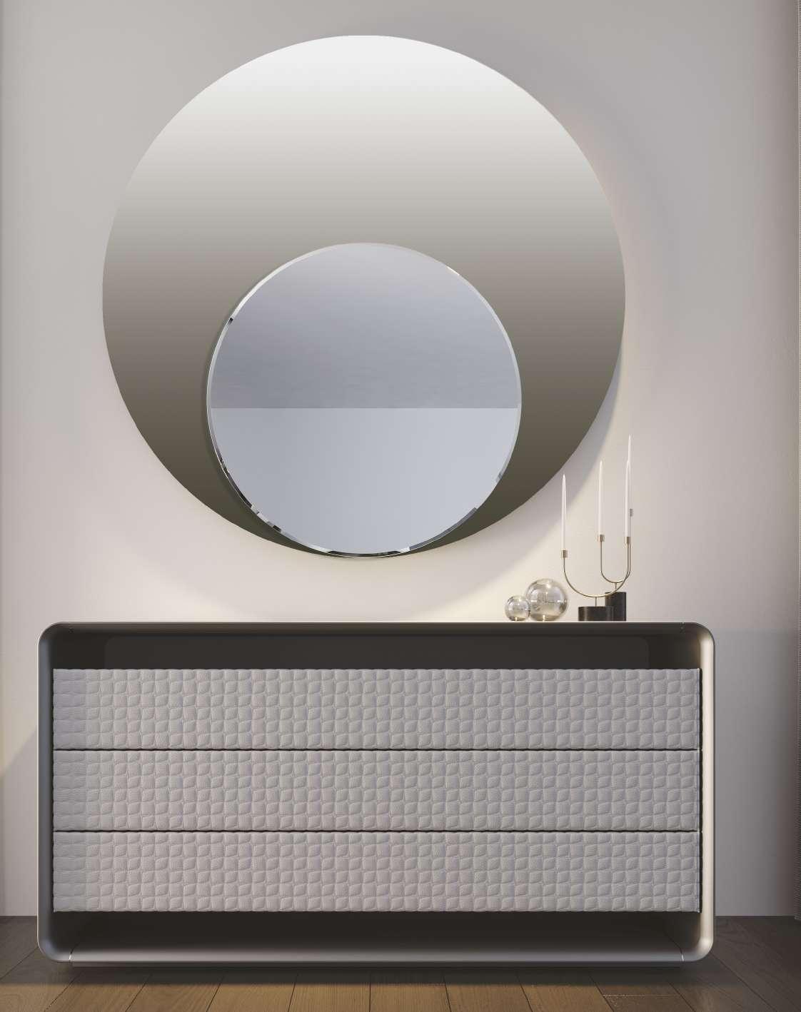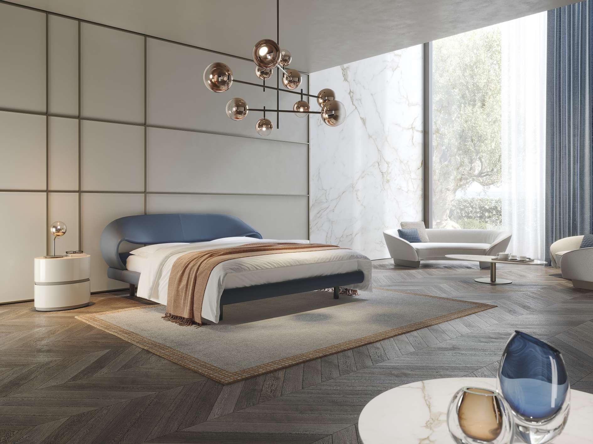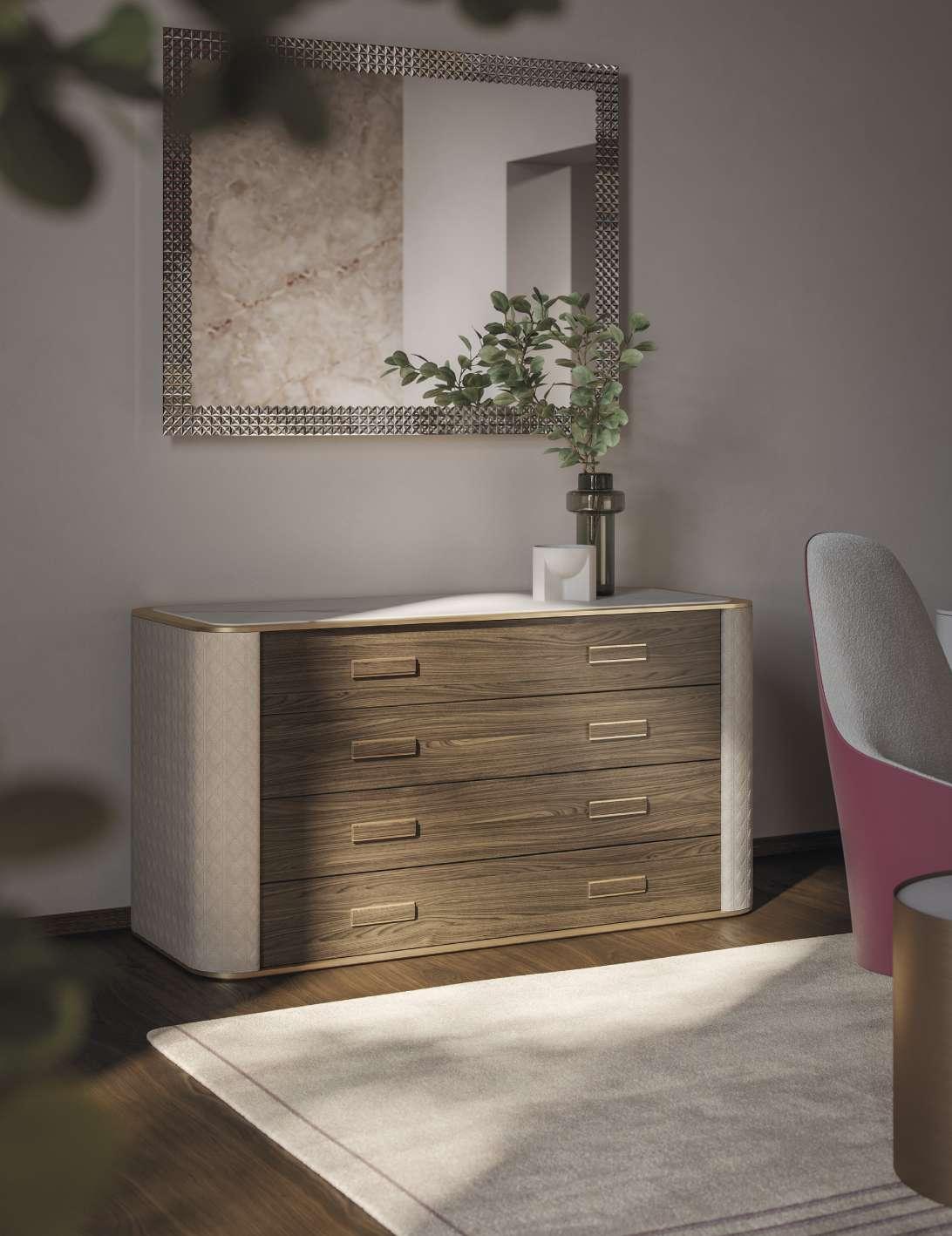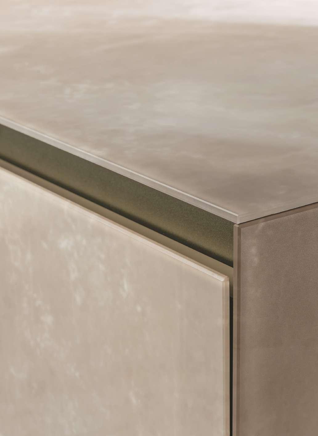 Bedside tables in Nabuk Grigio and 100M Bronze details