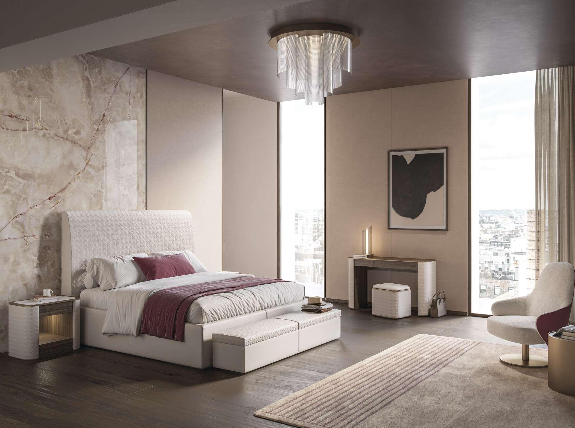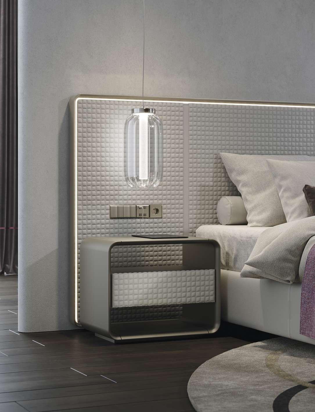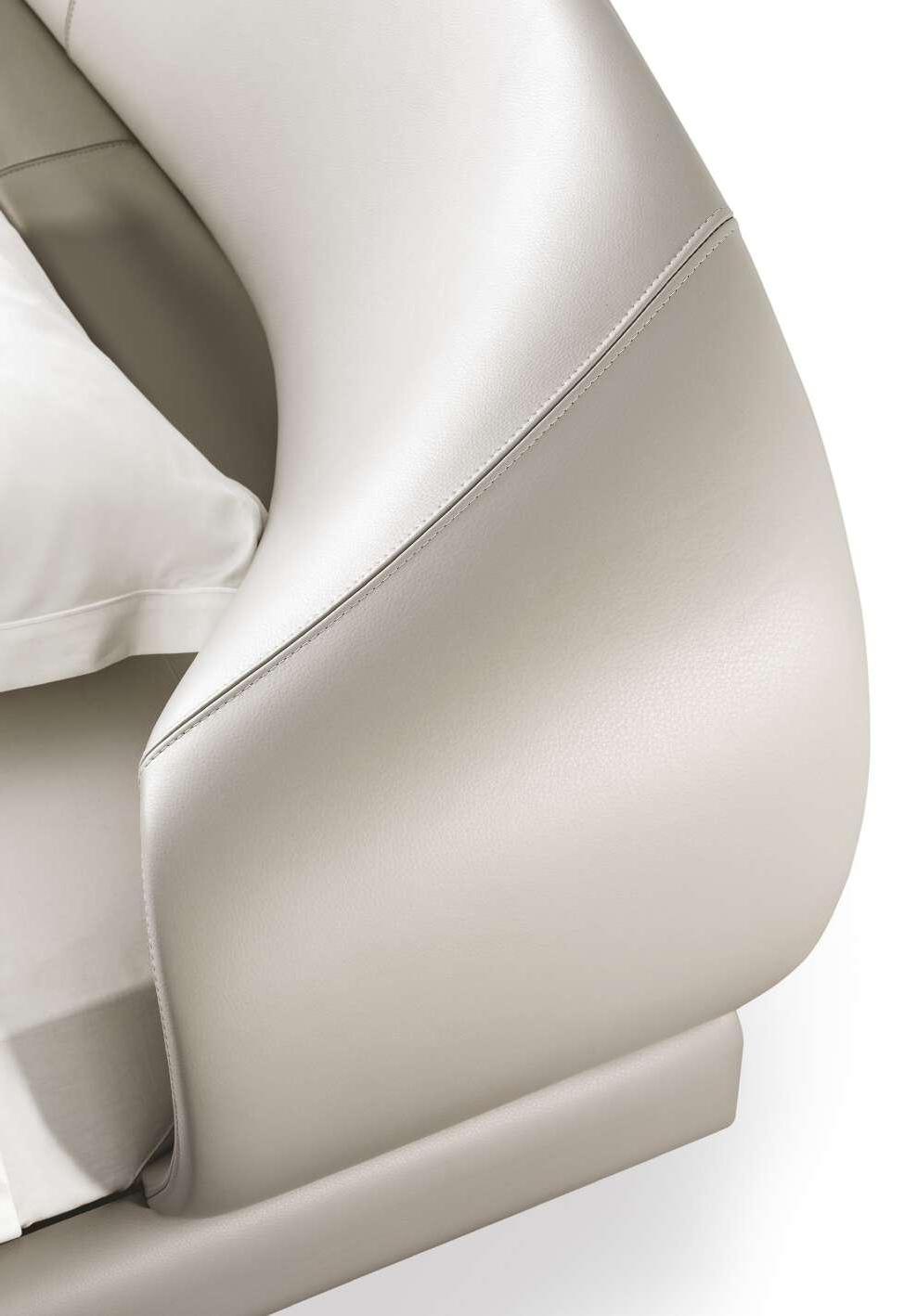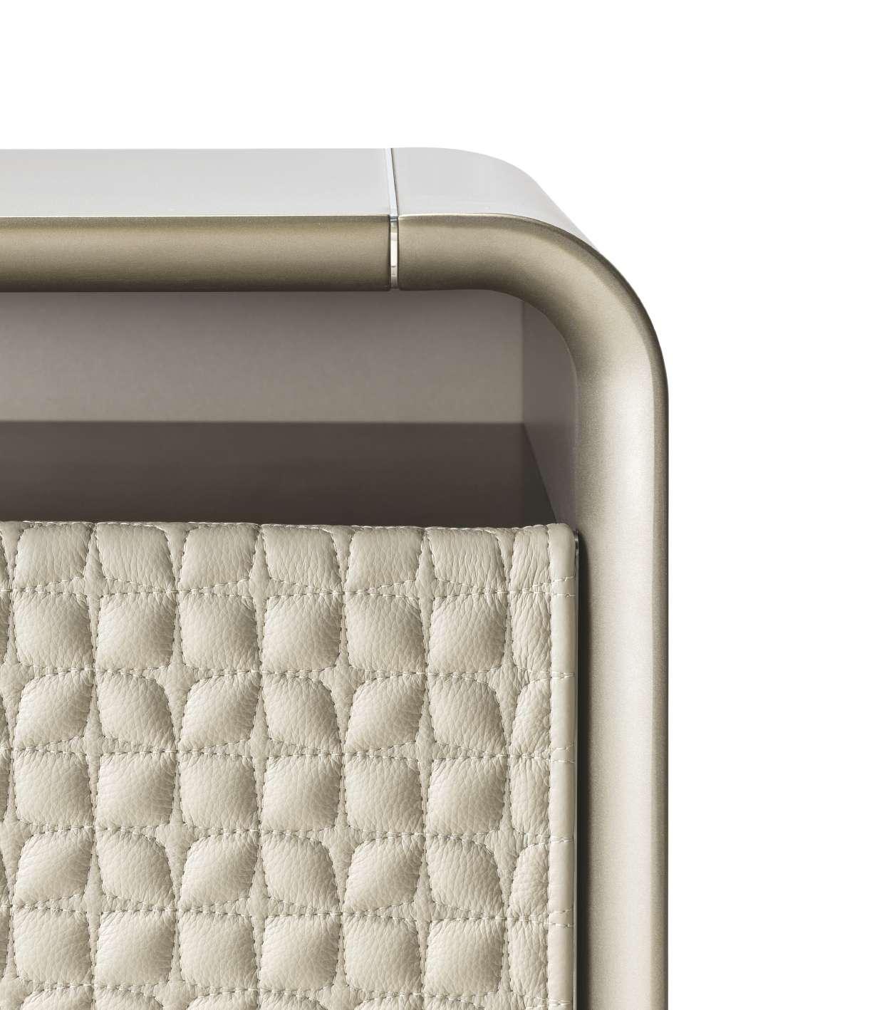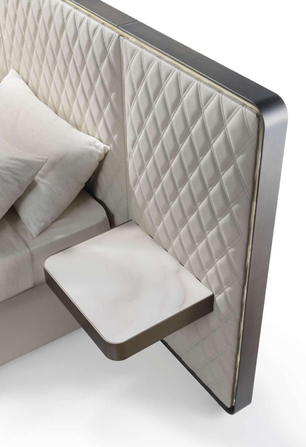 Headboard detail in leather Cat.C Platino with San Marco quilting