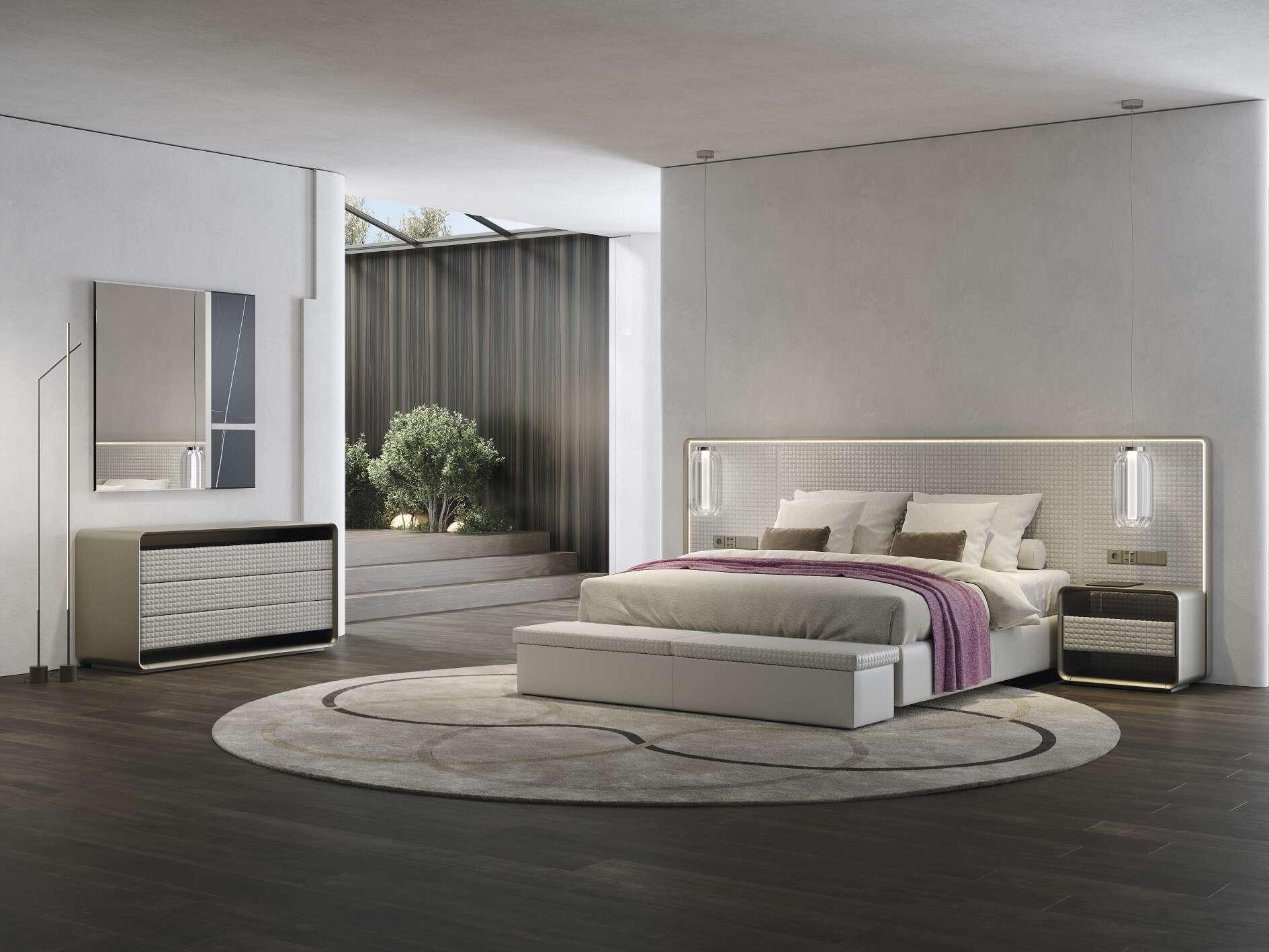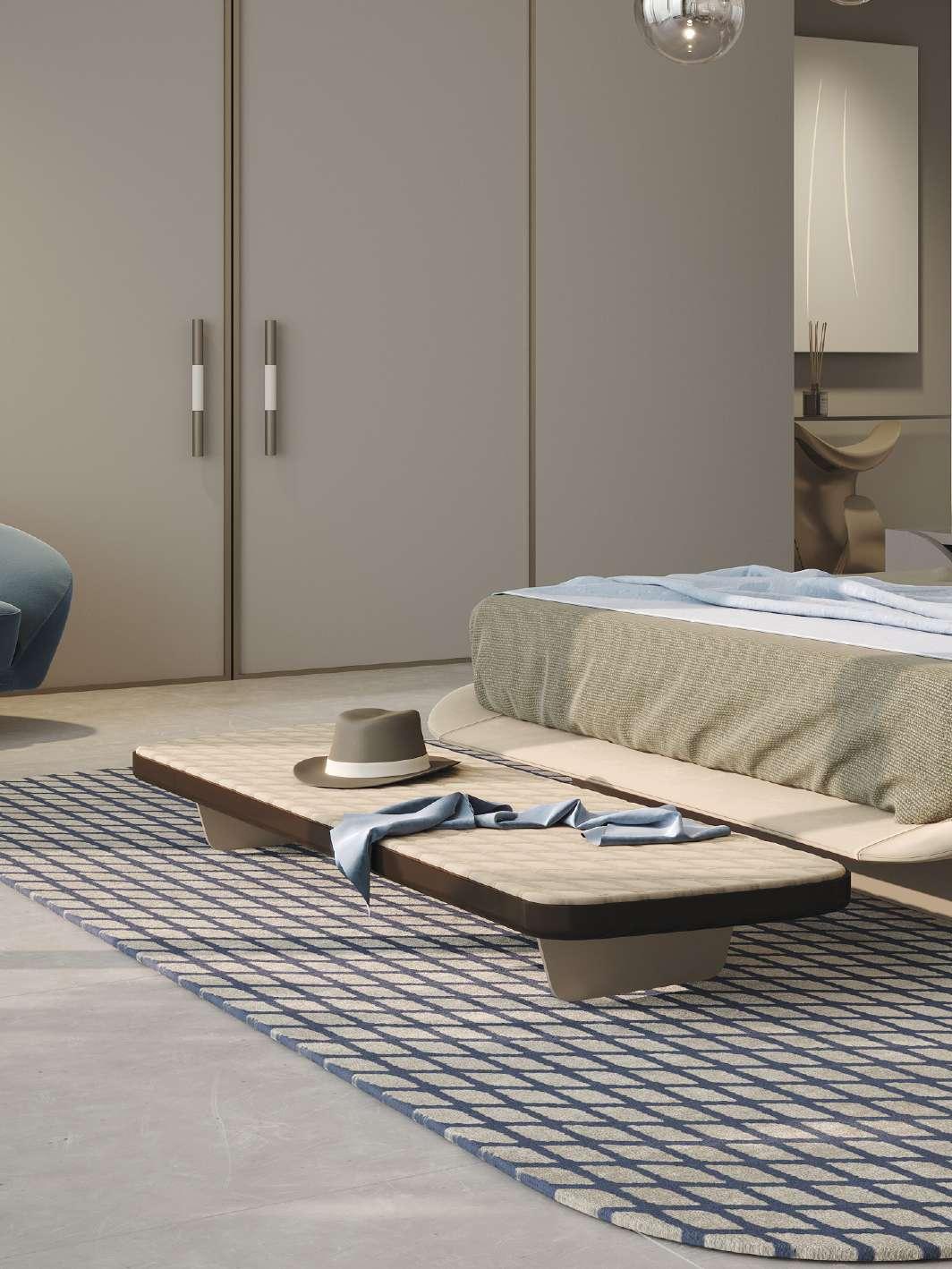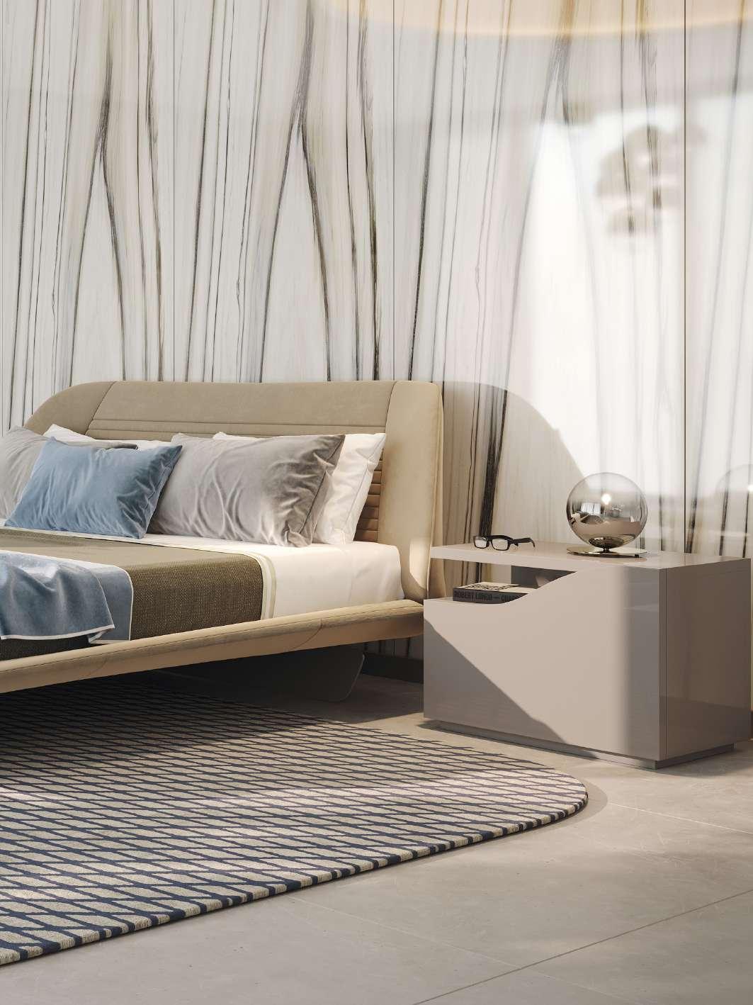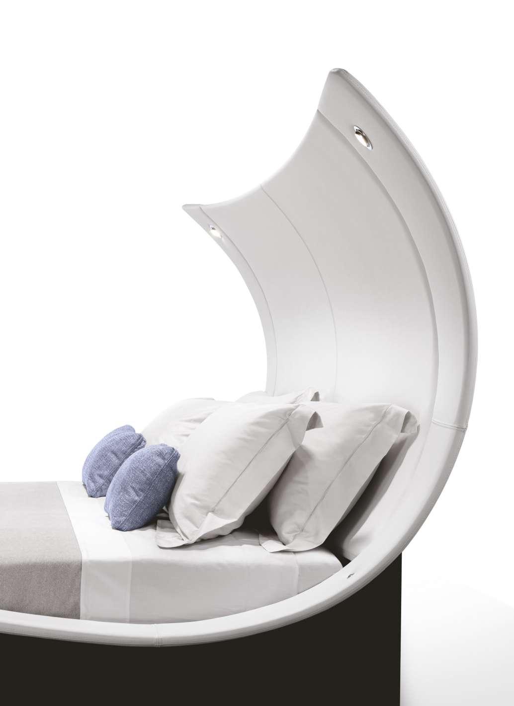 Headboard detail in leather Cat.C Platino with San Marco quilting