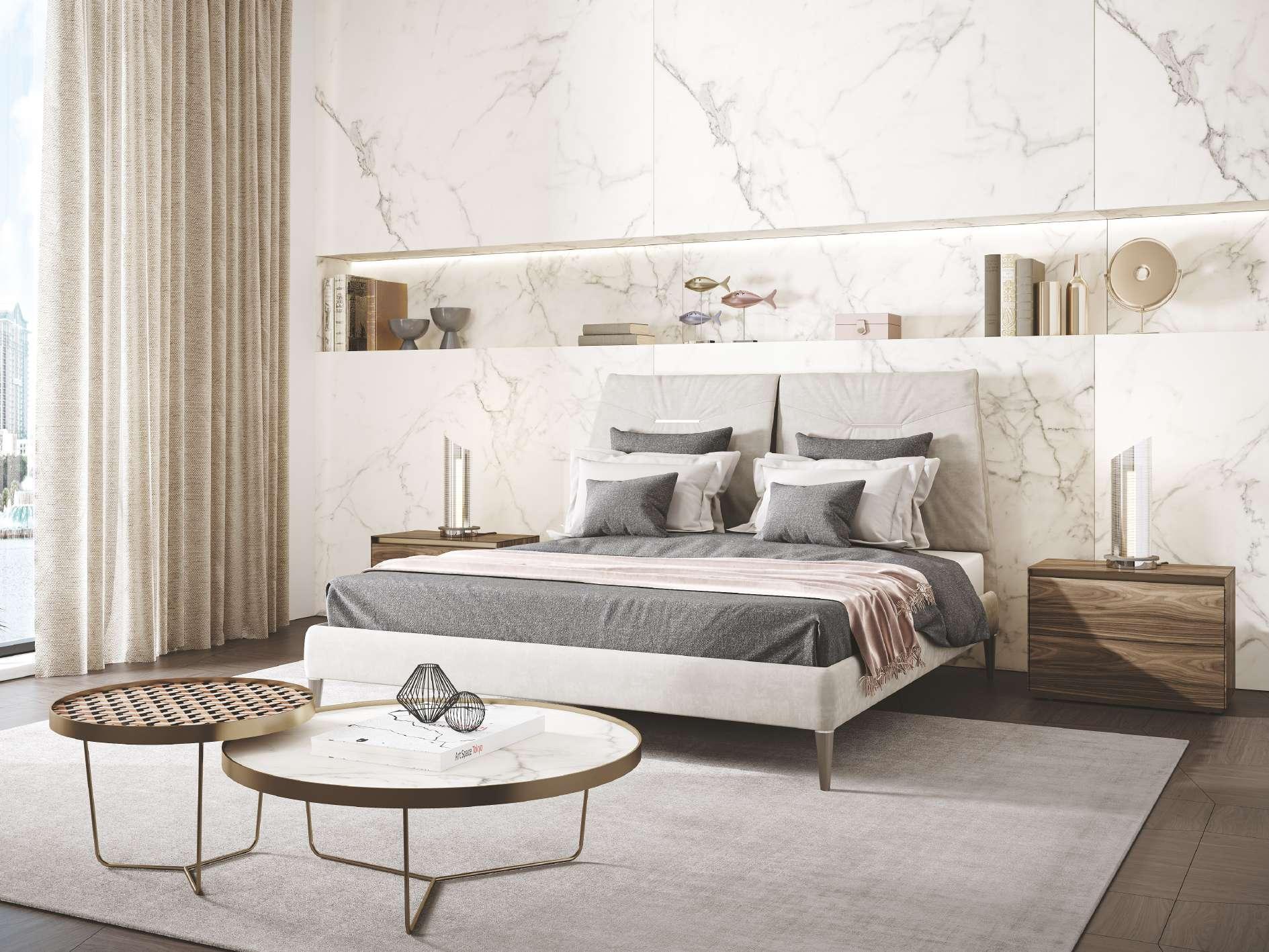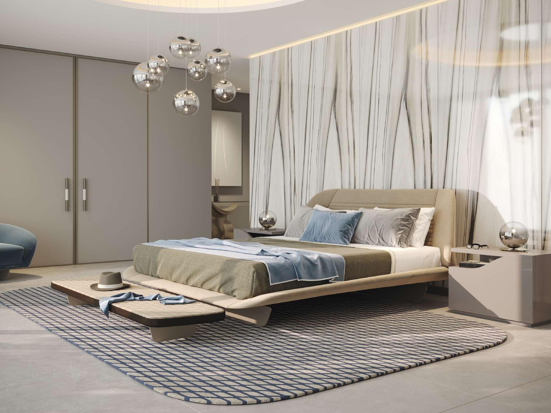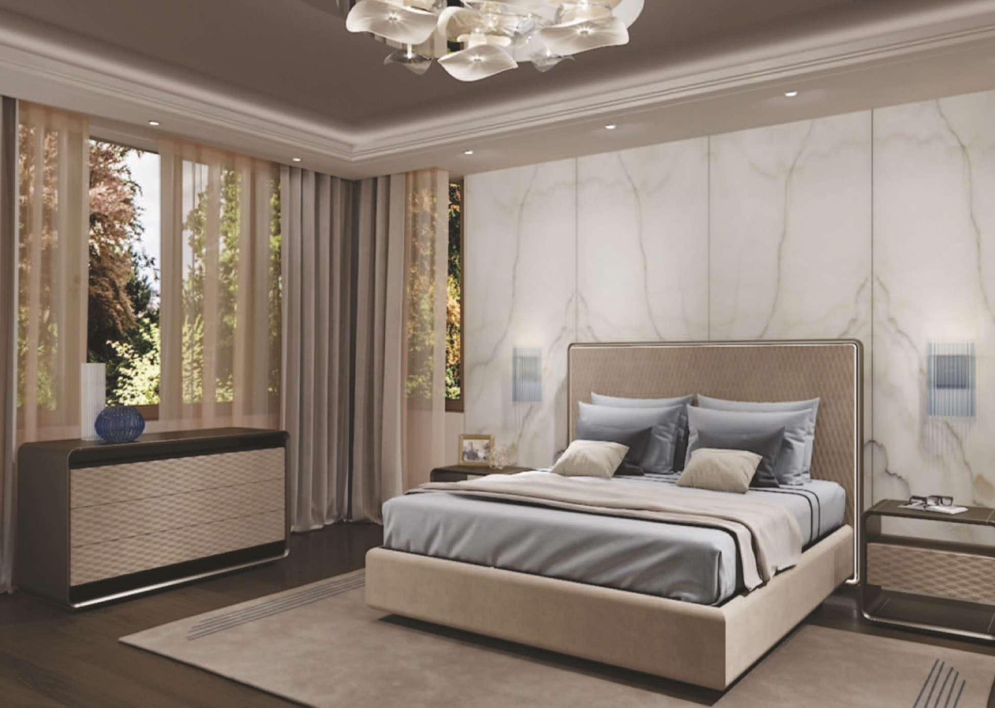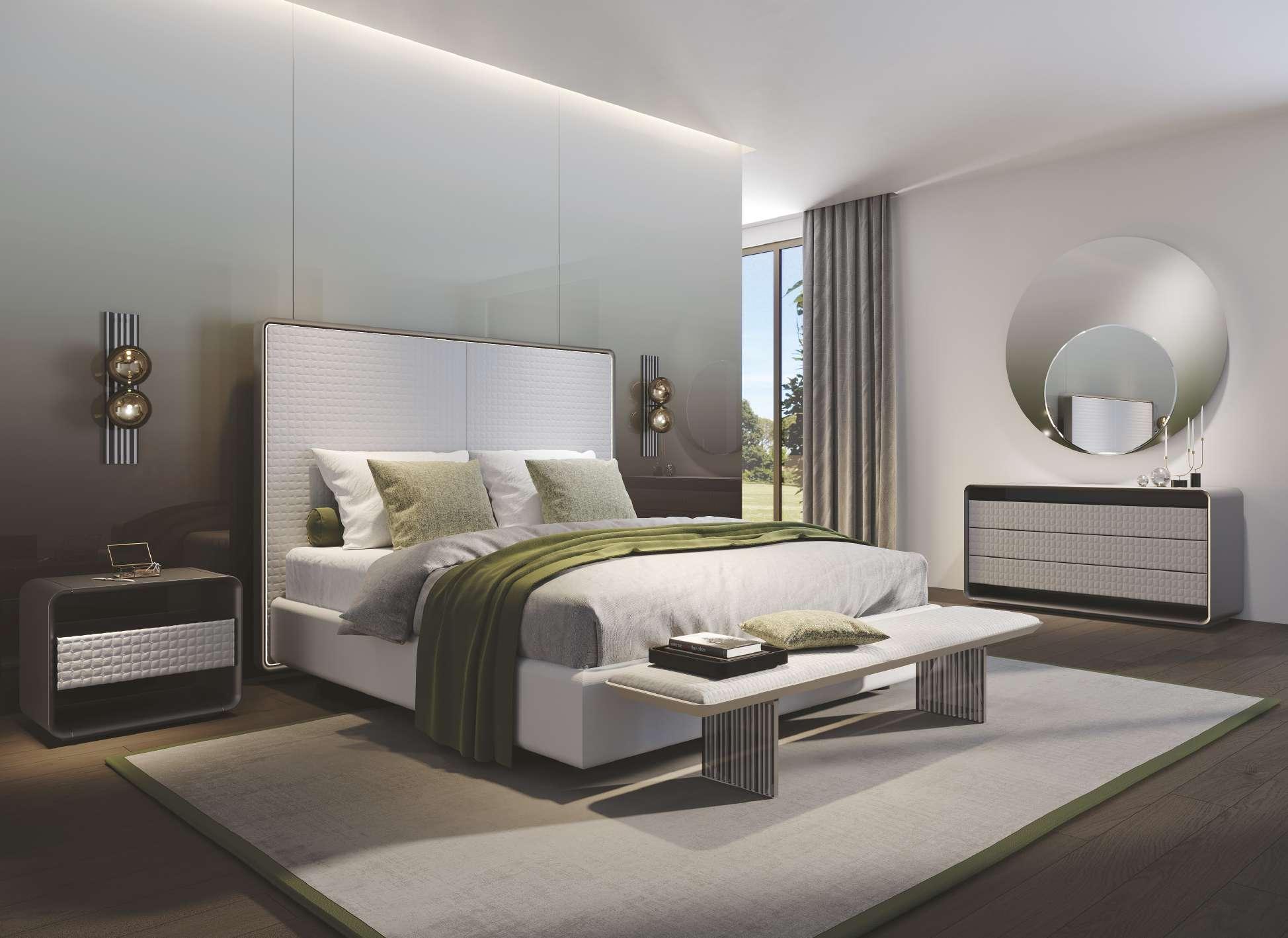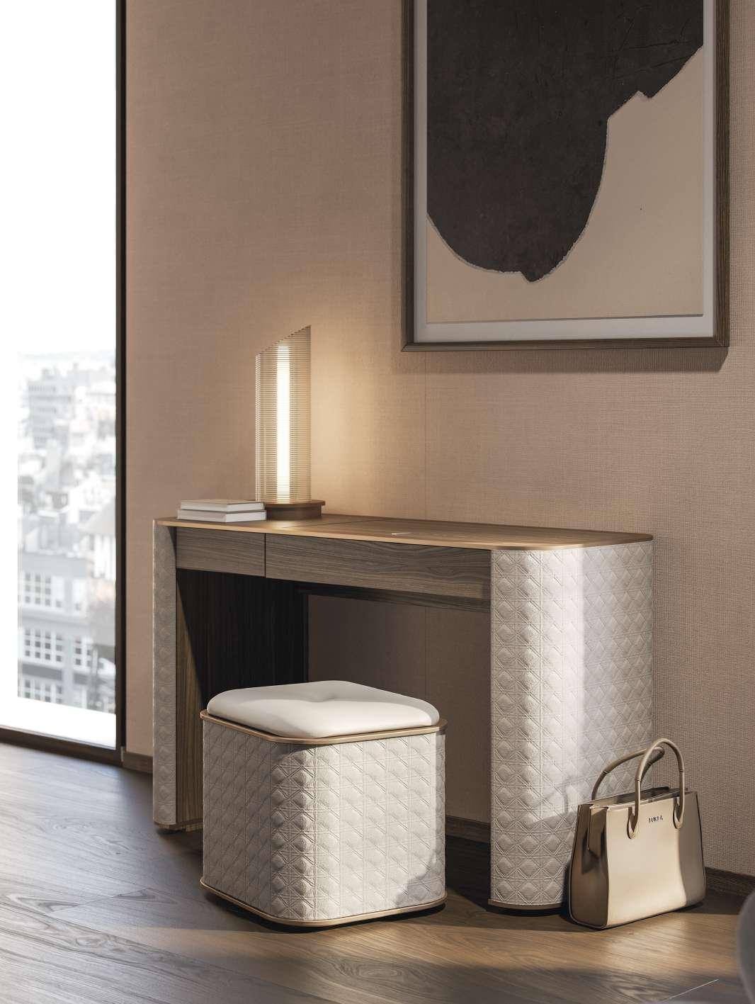 Headboard detail in leather Cat.C Platino with San Marco quilting