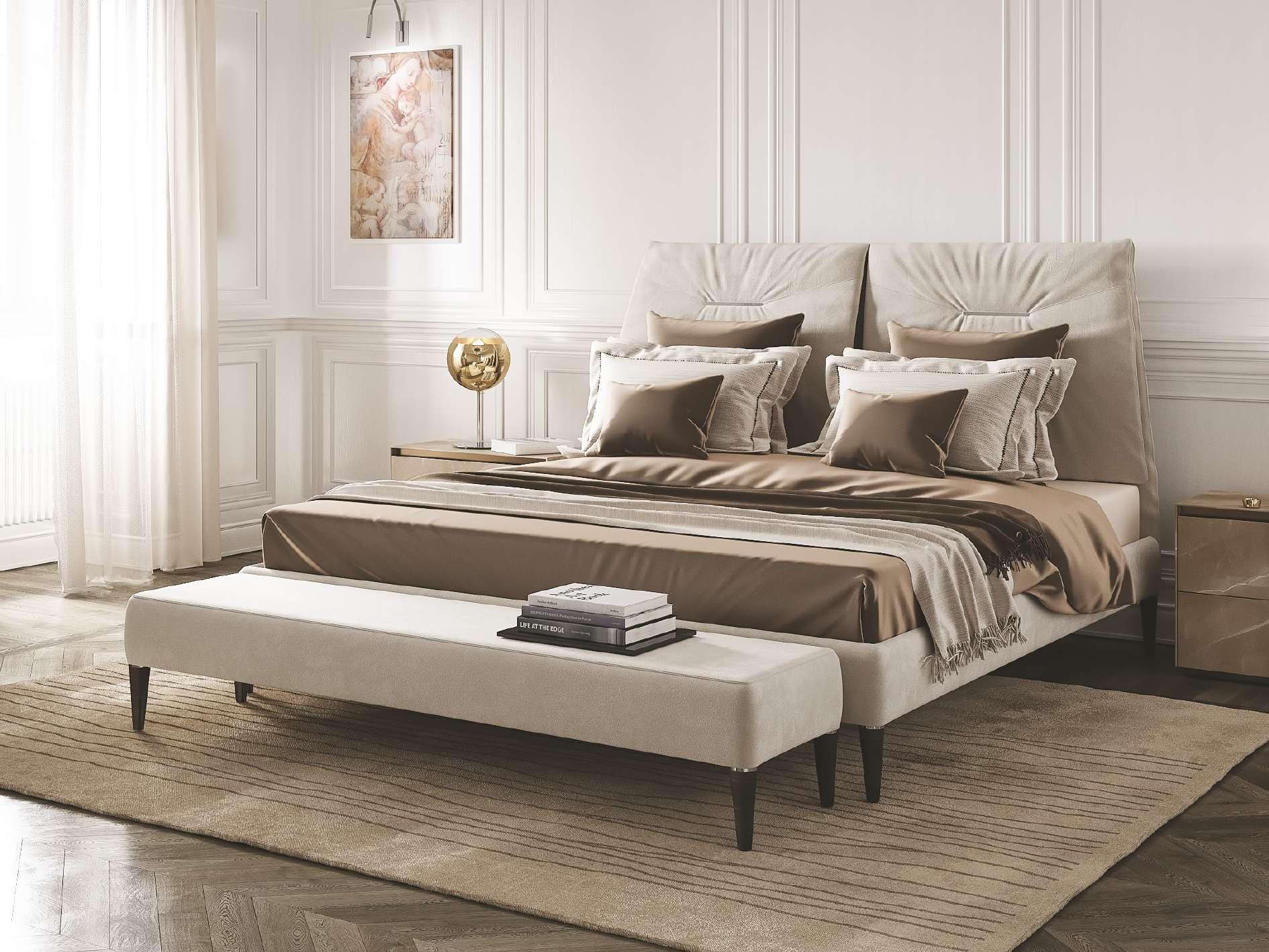 Upholstery leather Colorata Visone, headboard with Emerald quilting