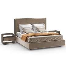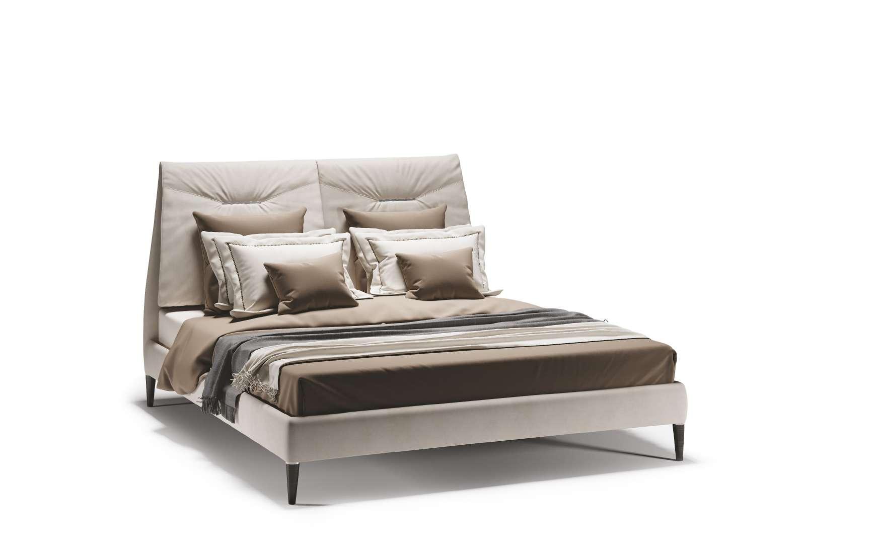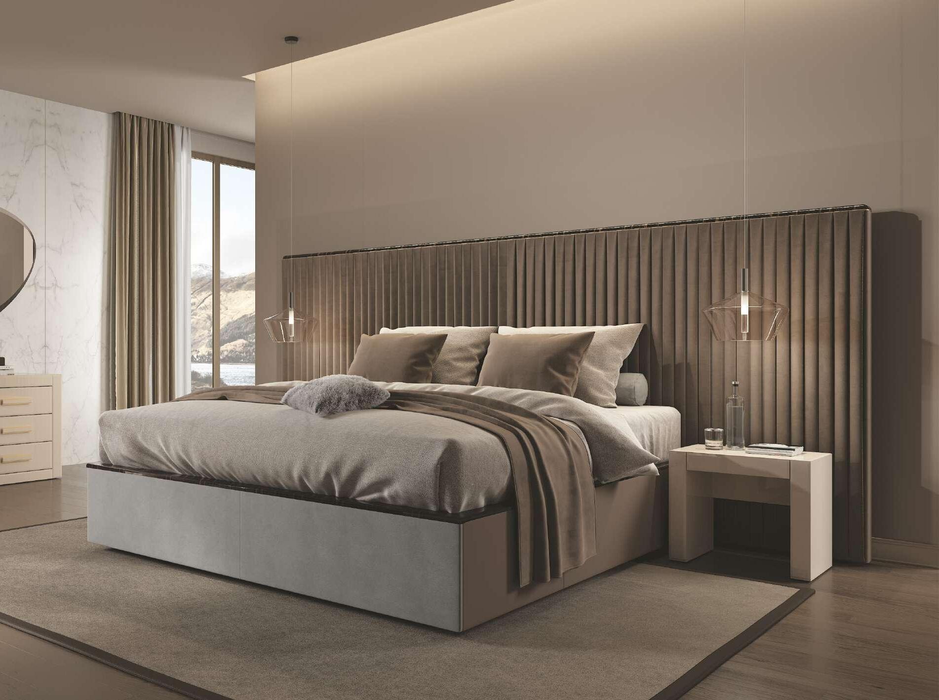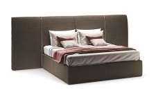 Upholstery leather Nabuk Seppia Headboard with Plissé finishing Profiles on bedframe and headboard in shiny metal and shiny Ebony wood (180X200) 346 x 218 x 162 h