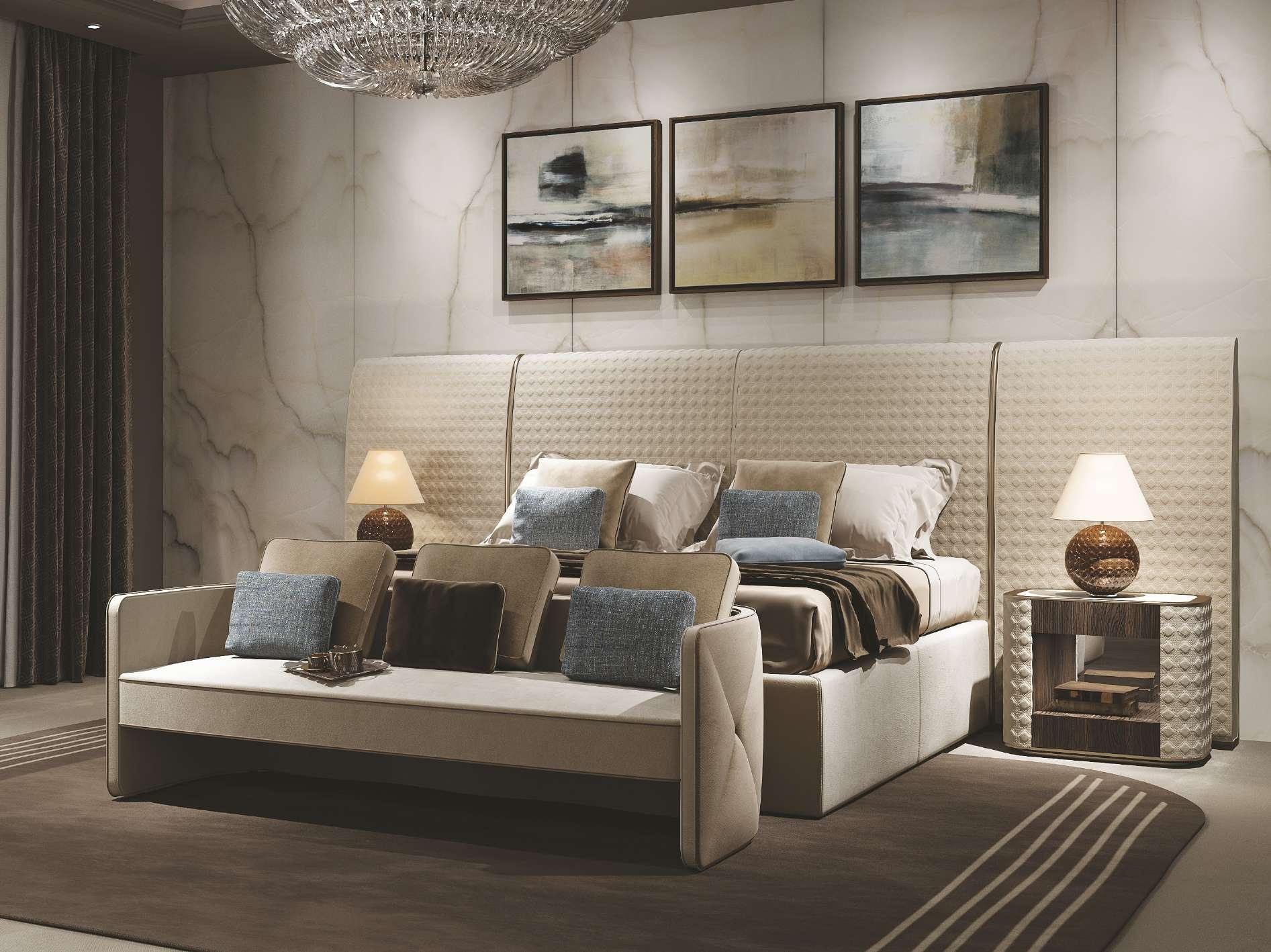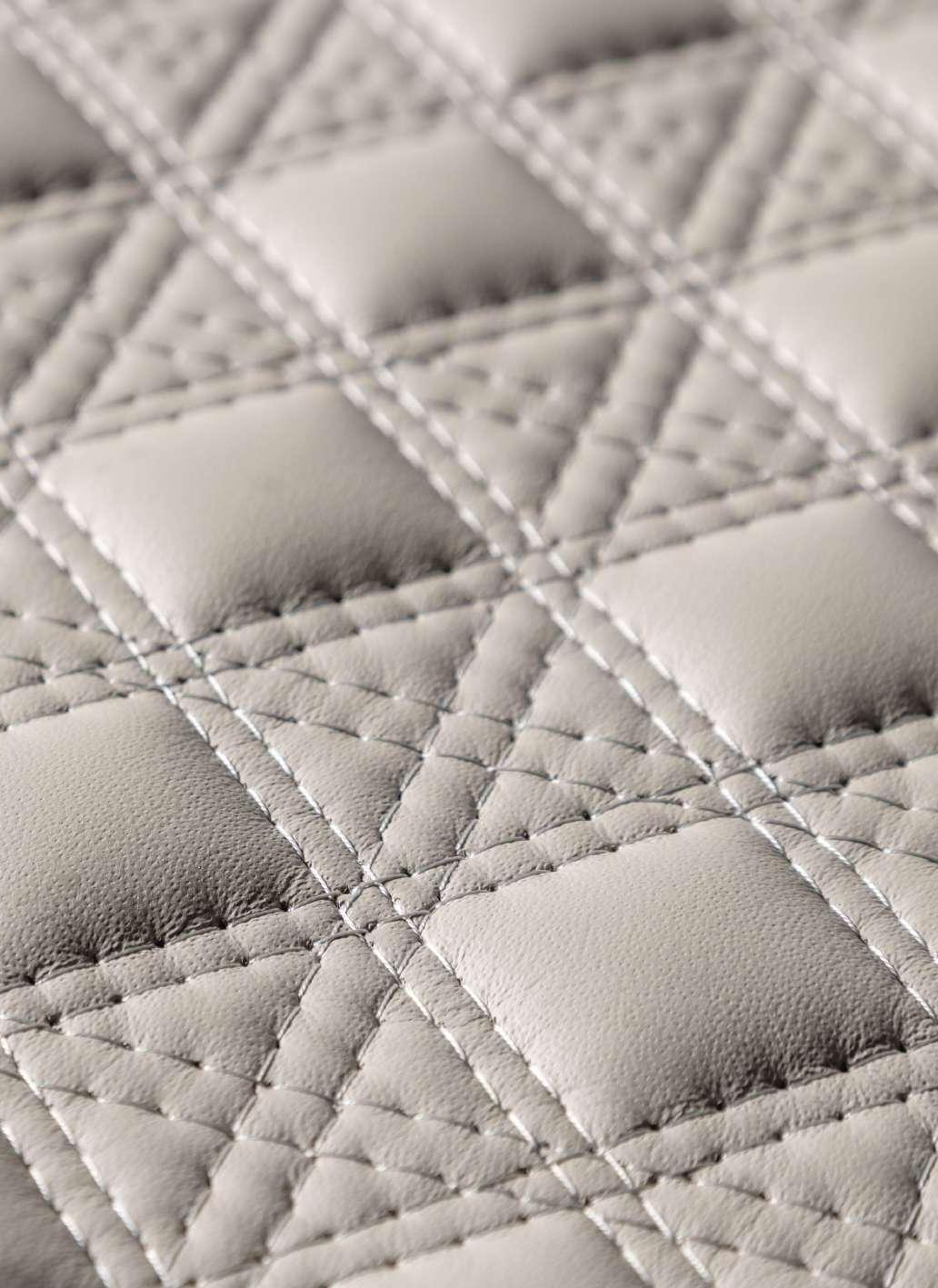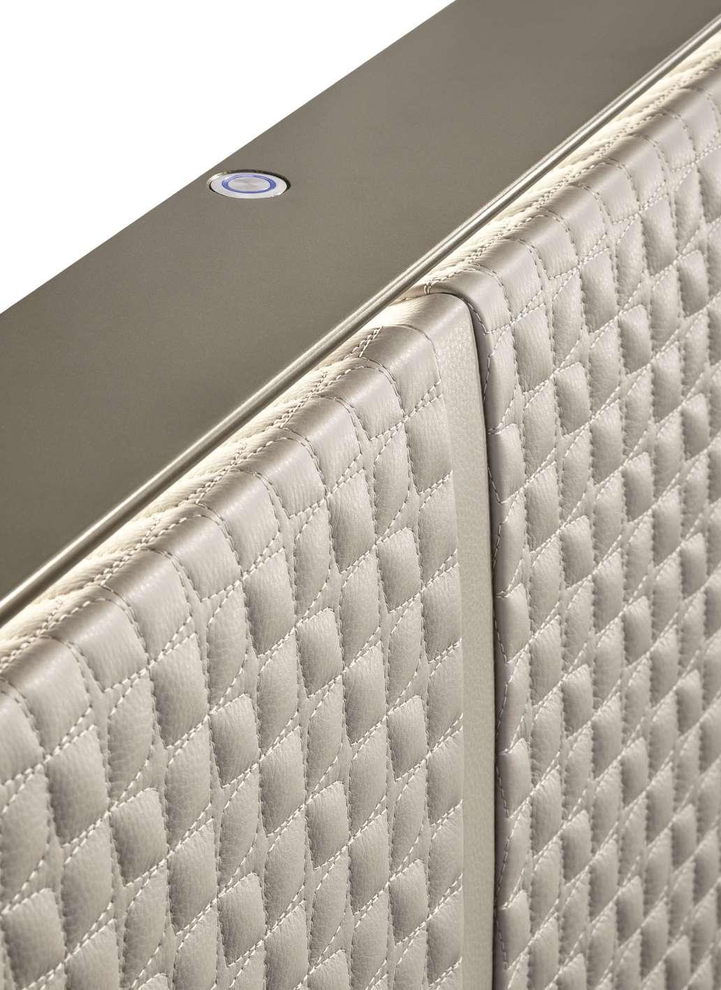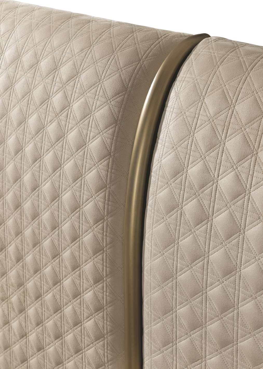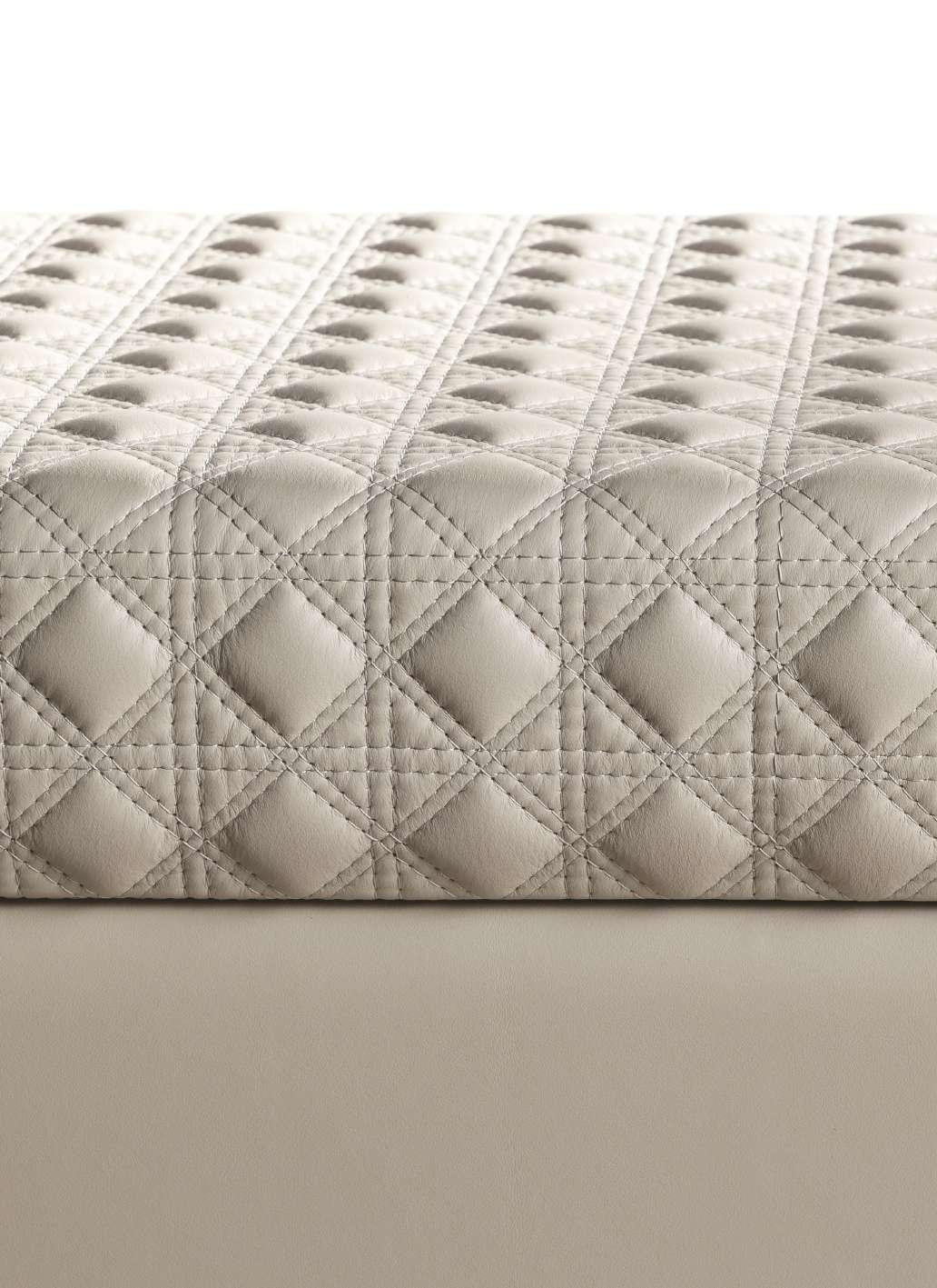 Detail of the headboard with Diamond quilting on Leather Cat. C Latte