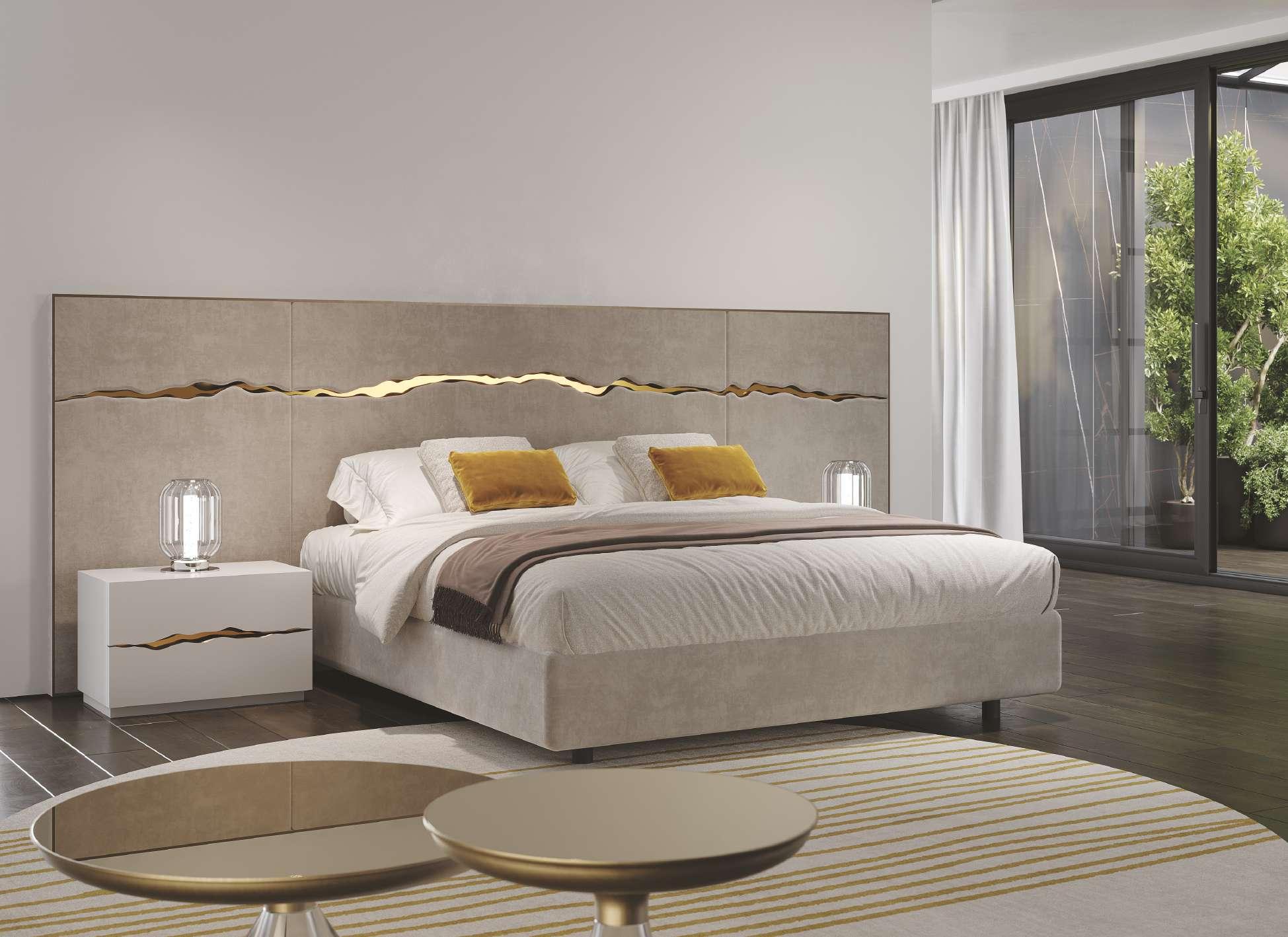 Upholstery leather Nabuk Sabbia Decoration in Gold finish (180x200) 200 x 215 x 140 h
