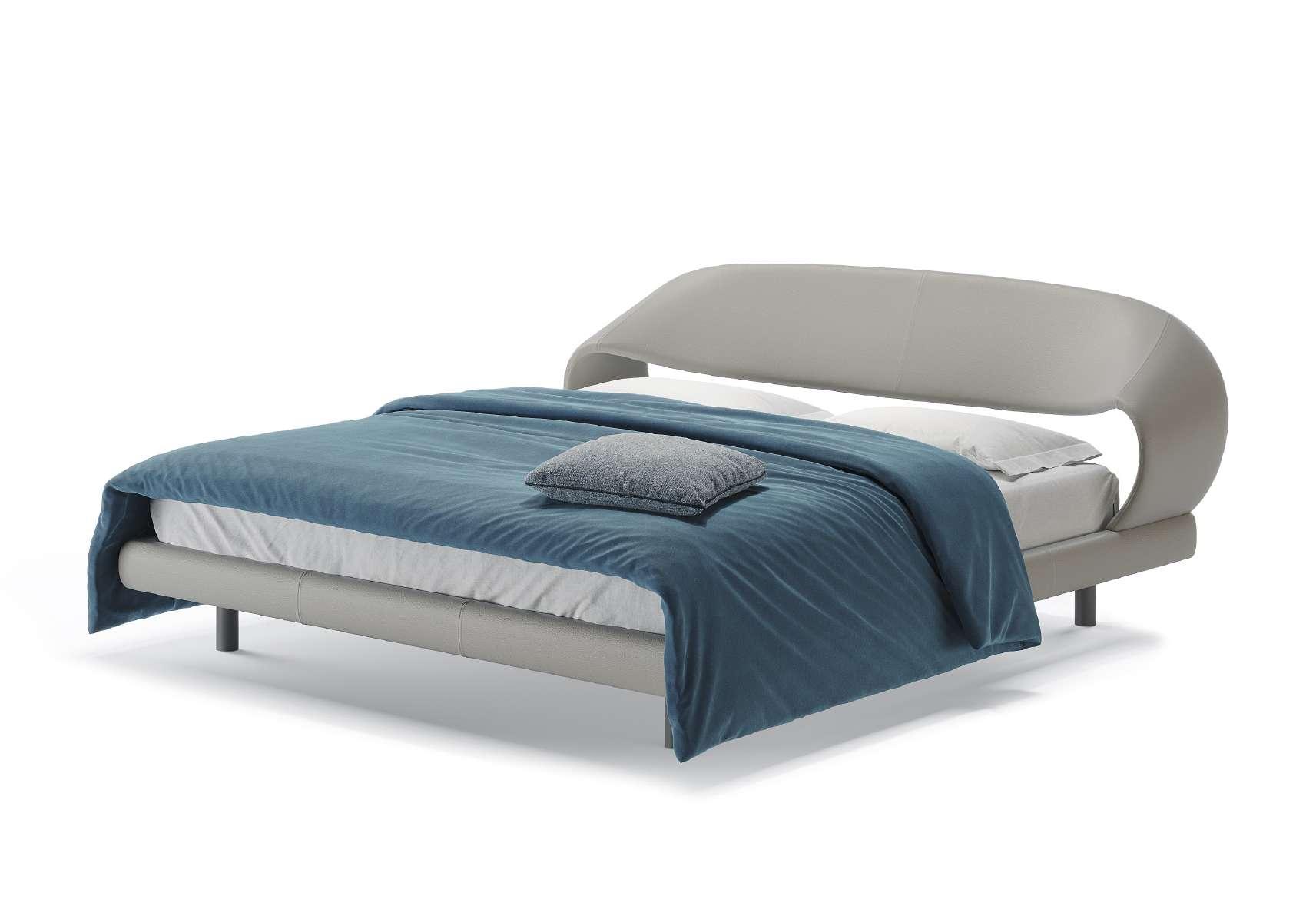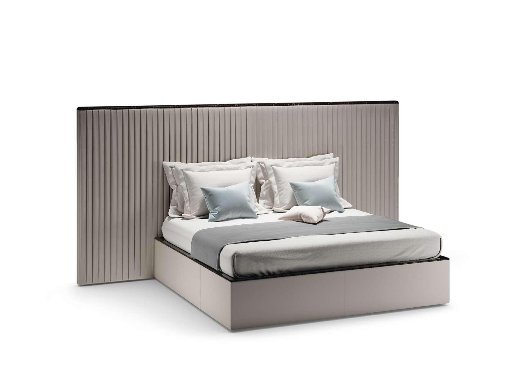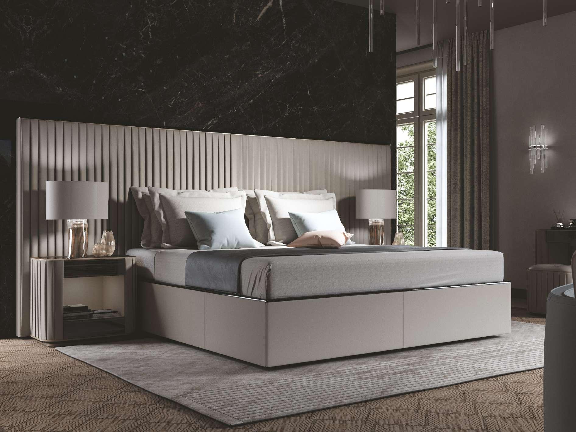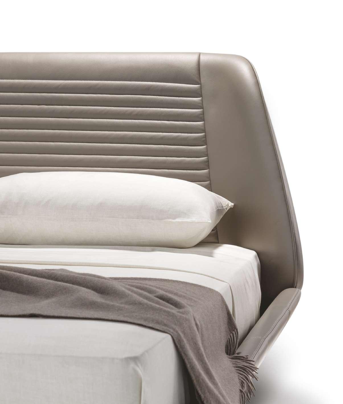 Headboard and bedframe detail upholstered in leather Colorata Tortora