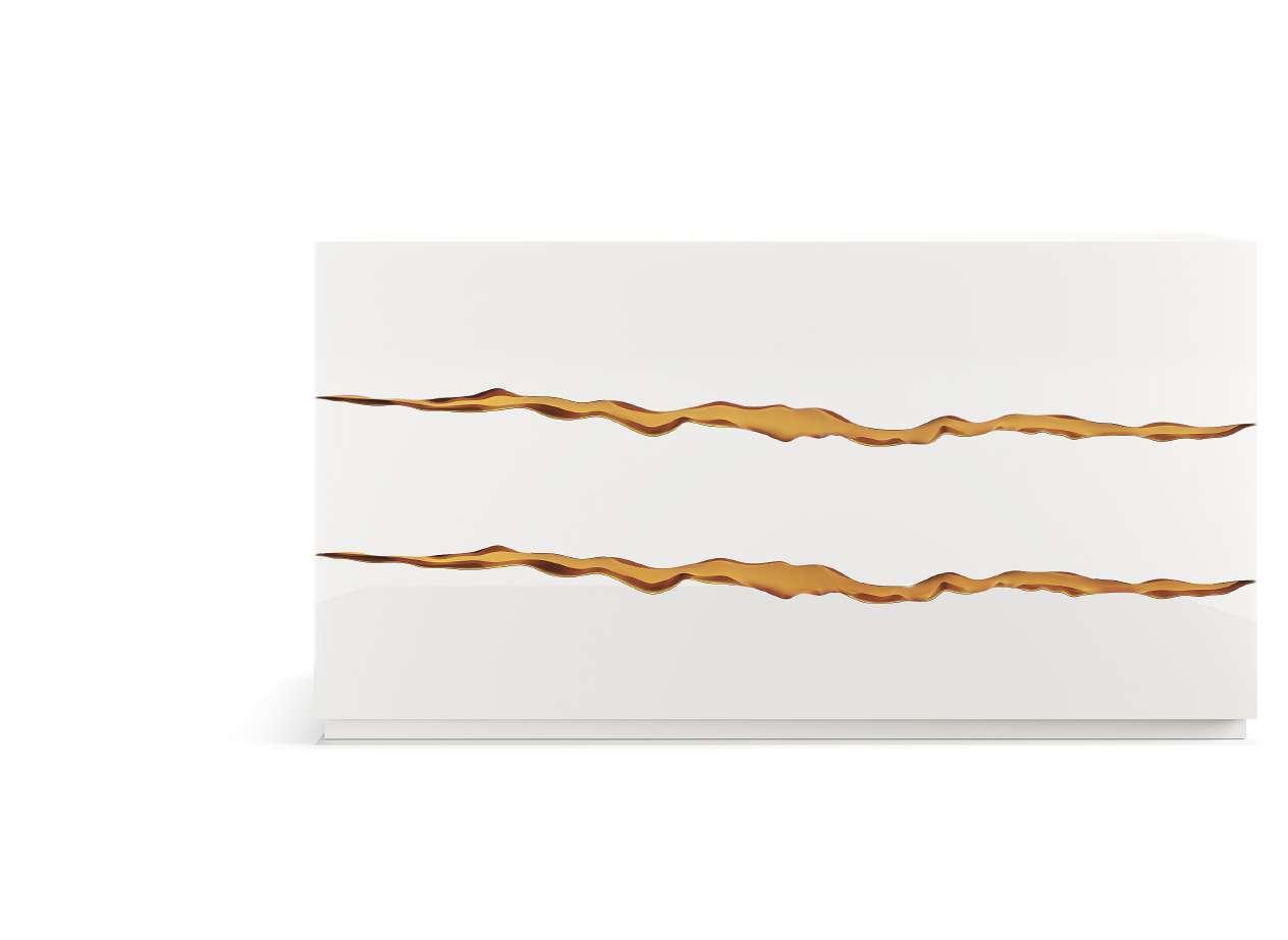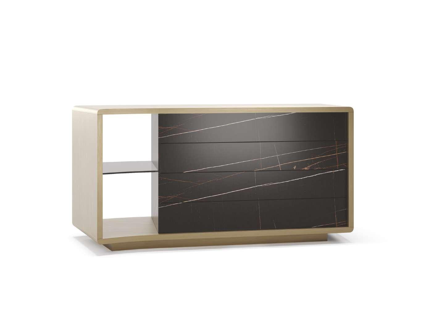 Wooden shelf in Bronze 100M finish with cover in Marmoreflex Onice Bianco