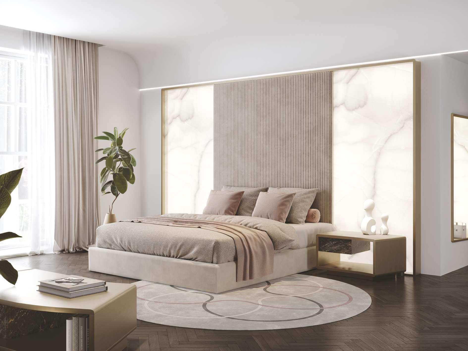 Lateral wings in MarmoReflex Onice Bianco with back light (180x200) 404 x 219 x 270 h
