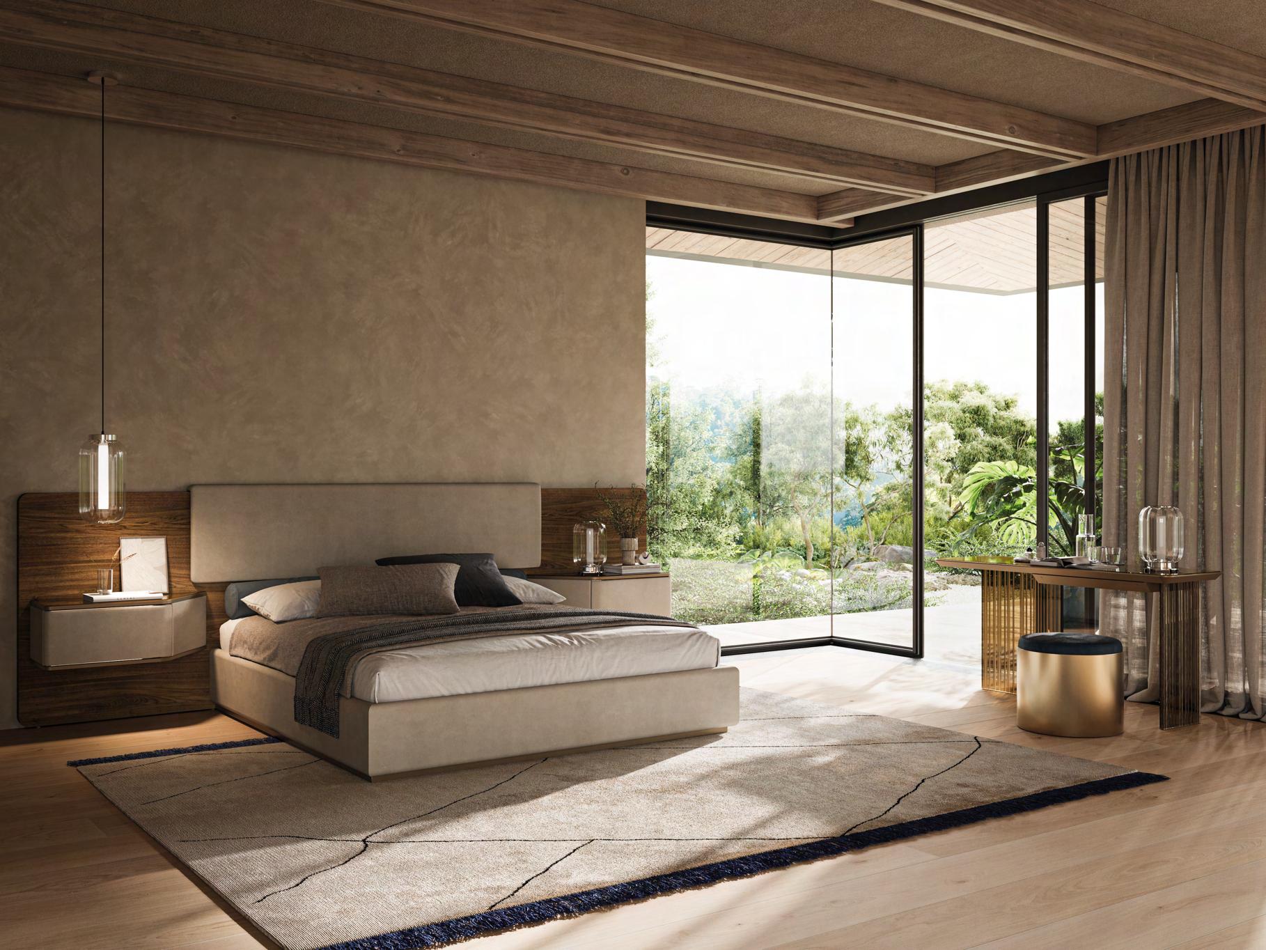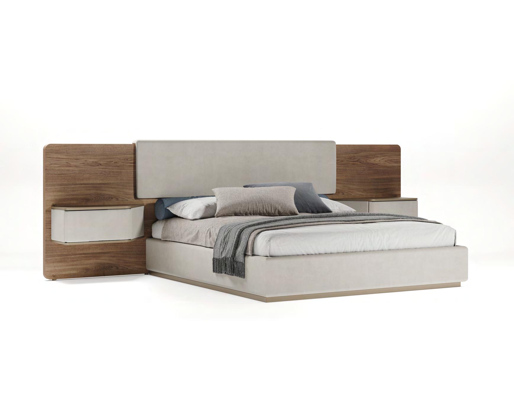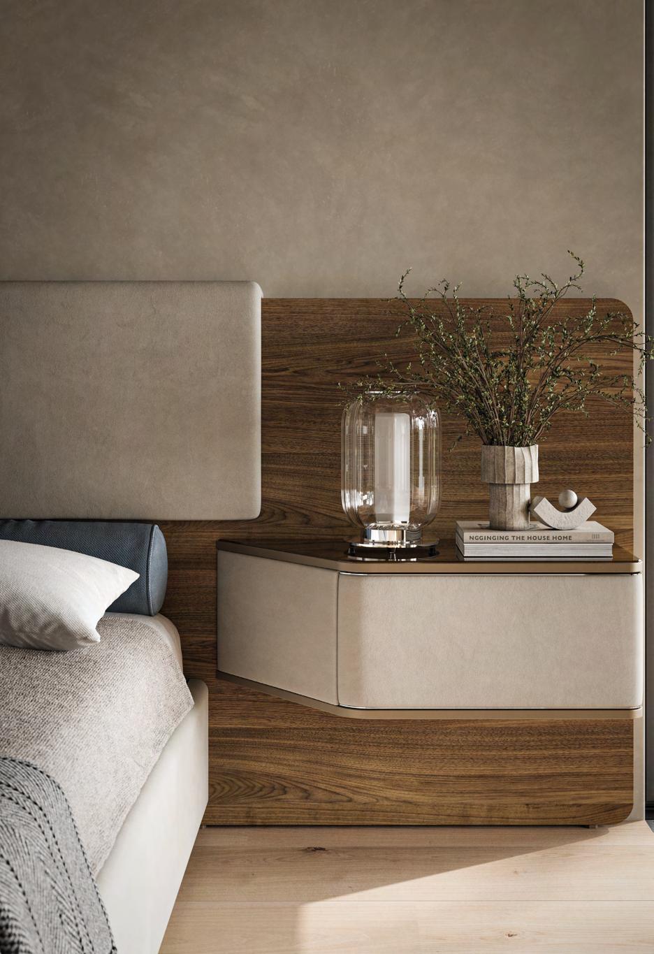 Bedside tables in Nabuk Grigio and 100M Bronze details
