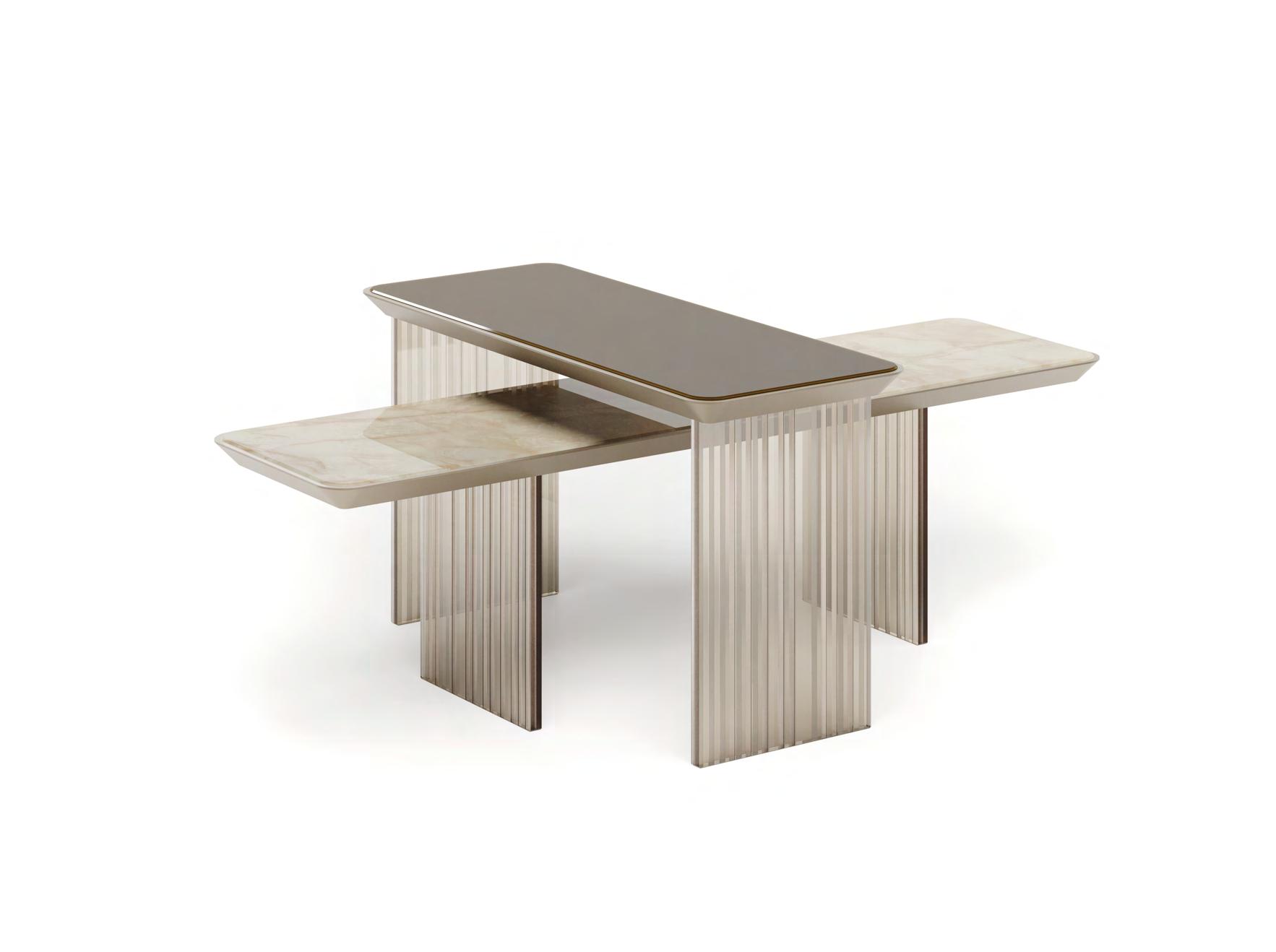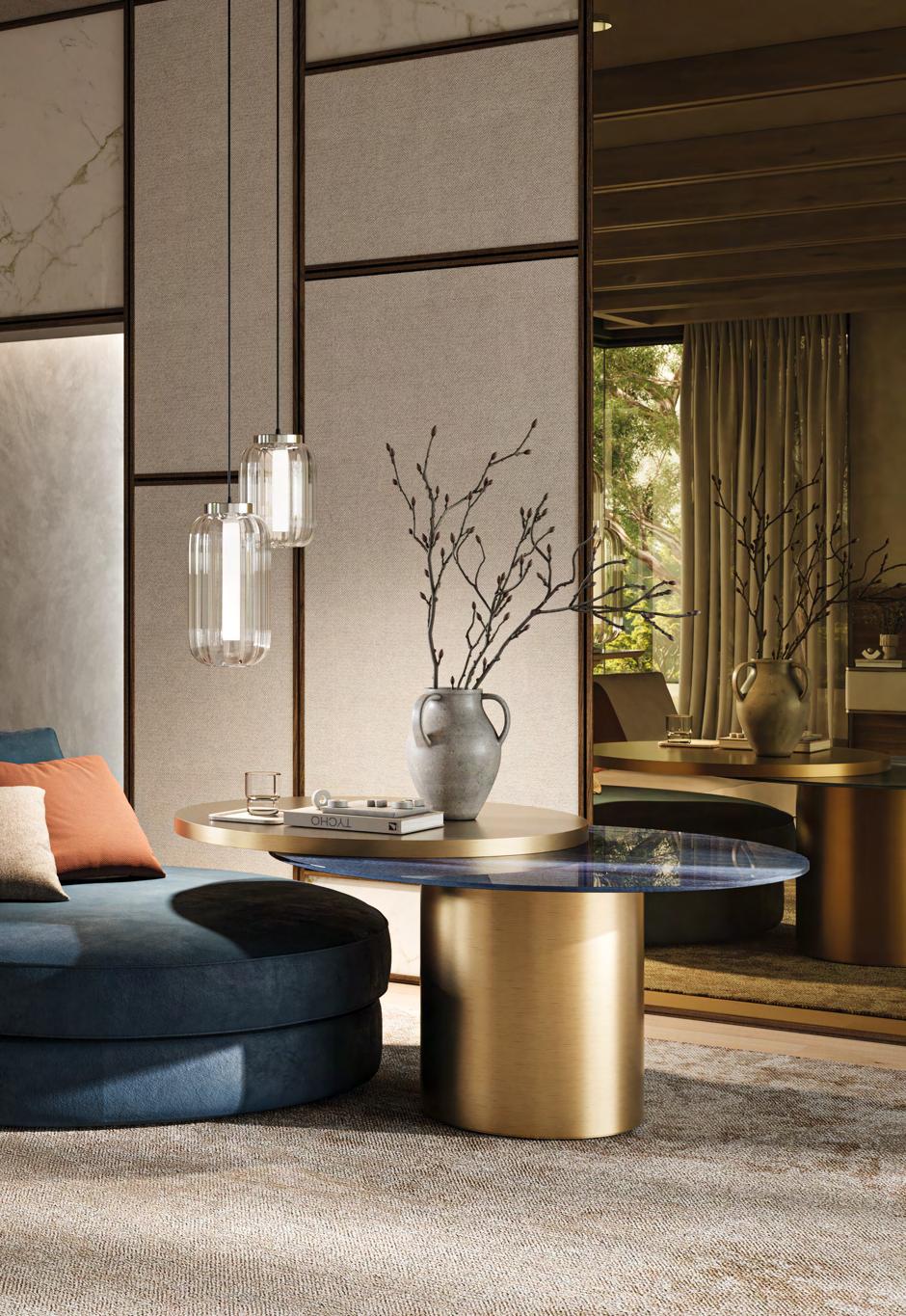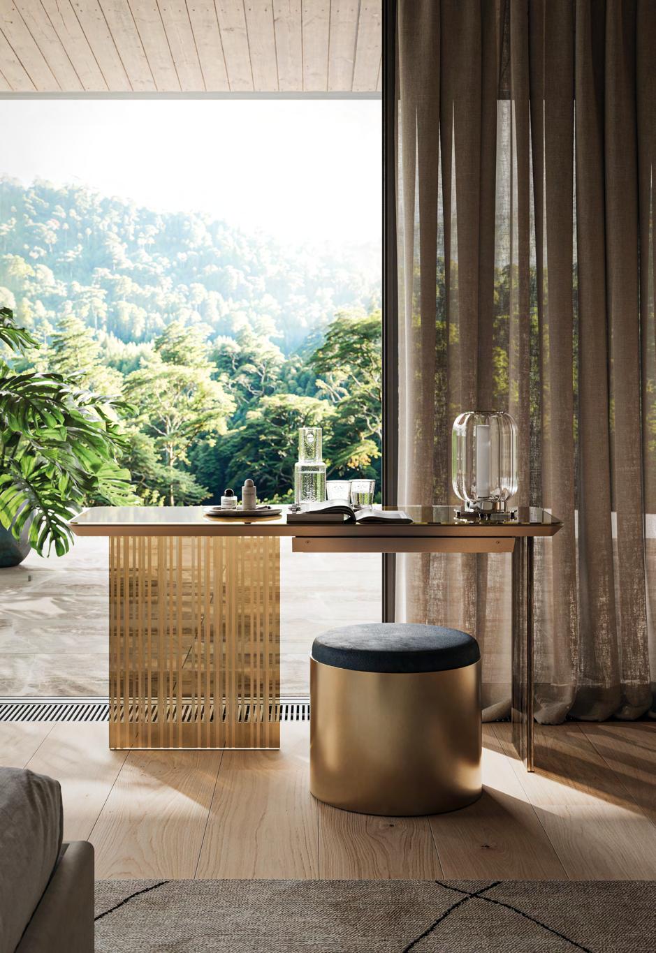 Bedside tables in Nabuk Grigio and 100M Bronze details