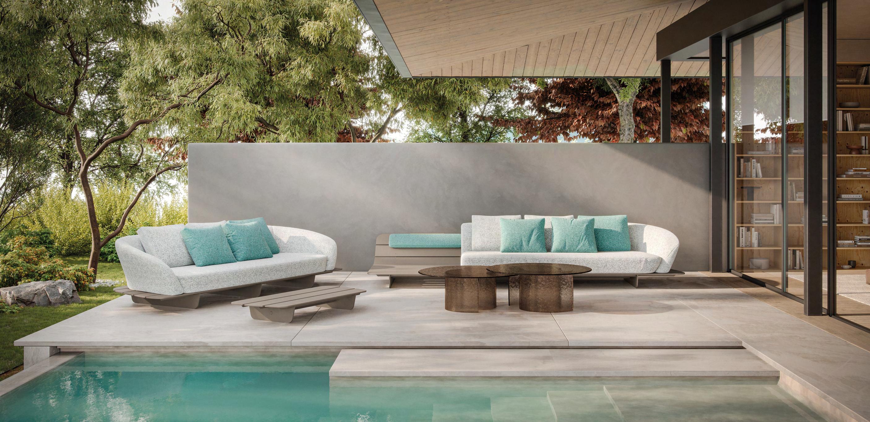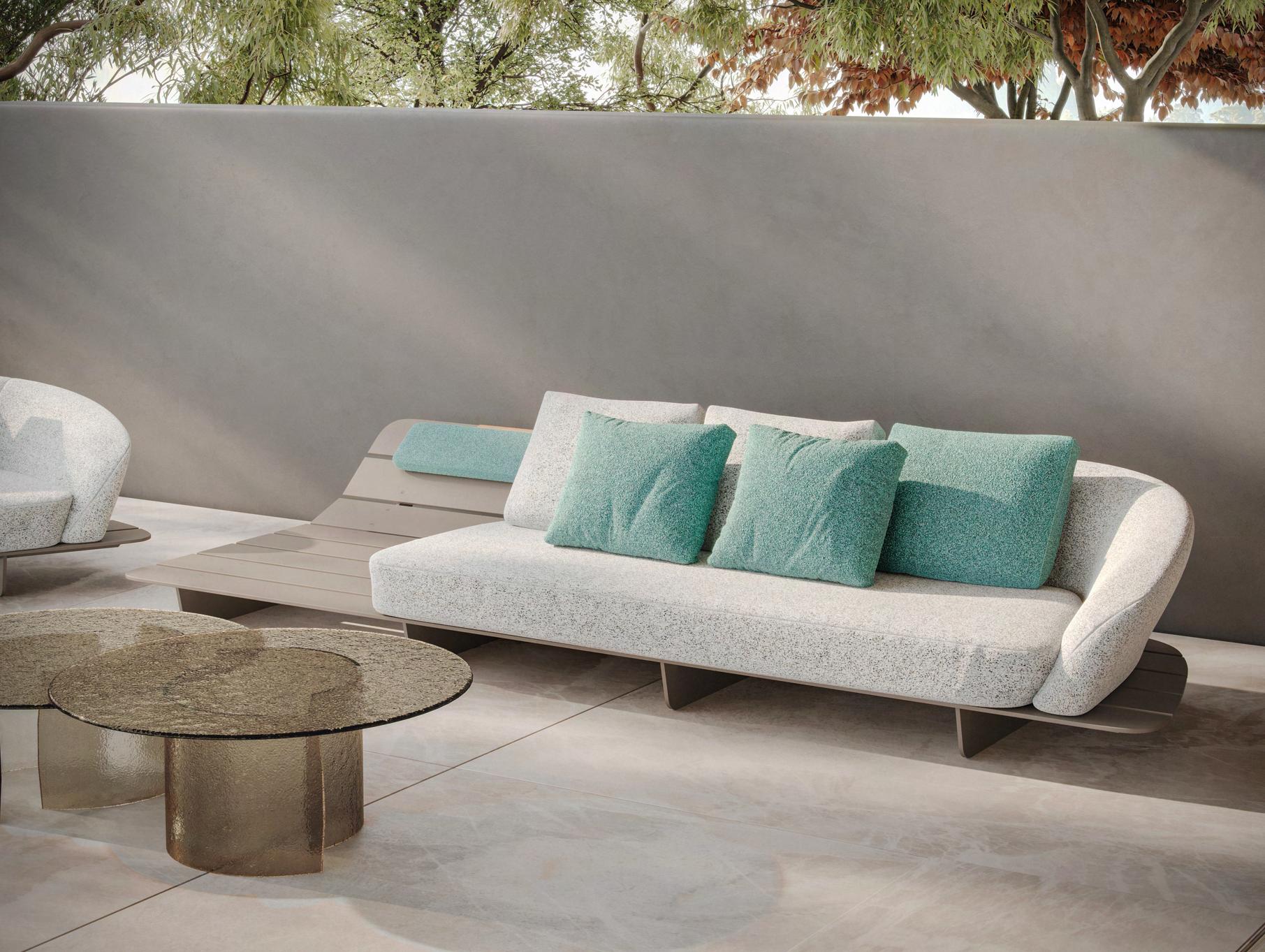 OPTIONAL Cuscino imbottito e poggiatesta per chaiselongue. Upholstered cushion and headrest for chaiselongue.