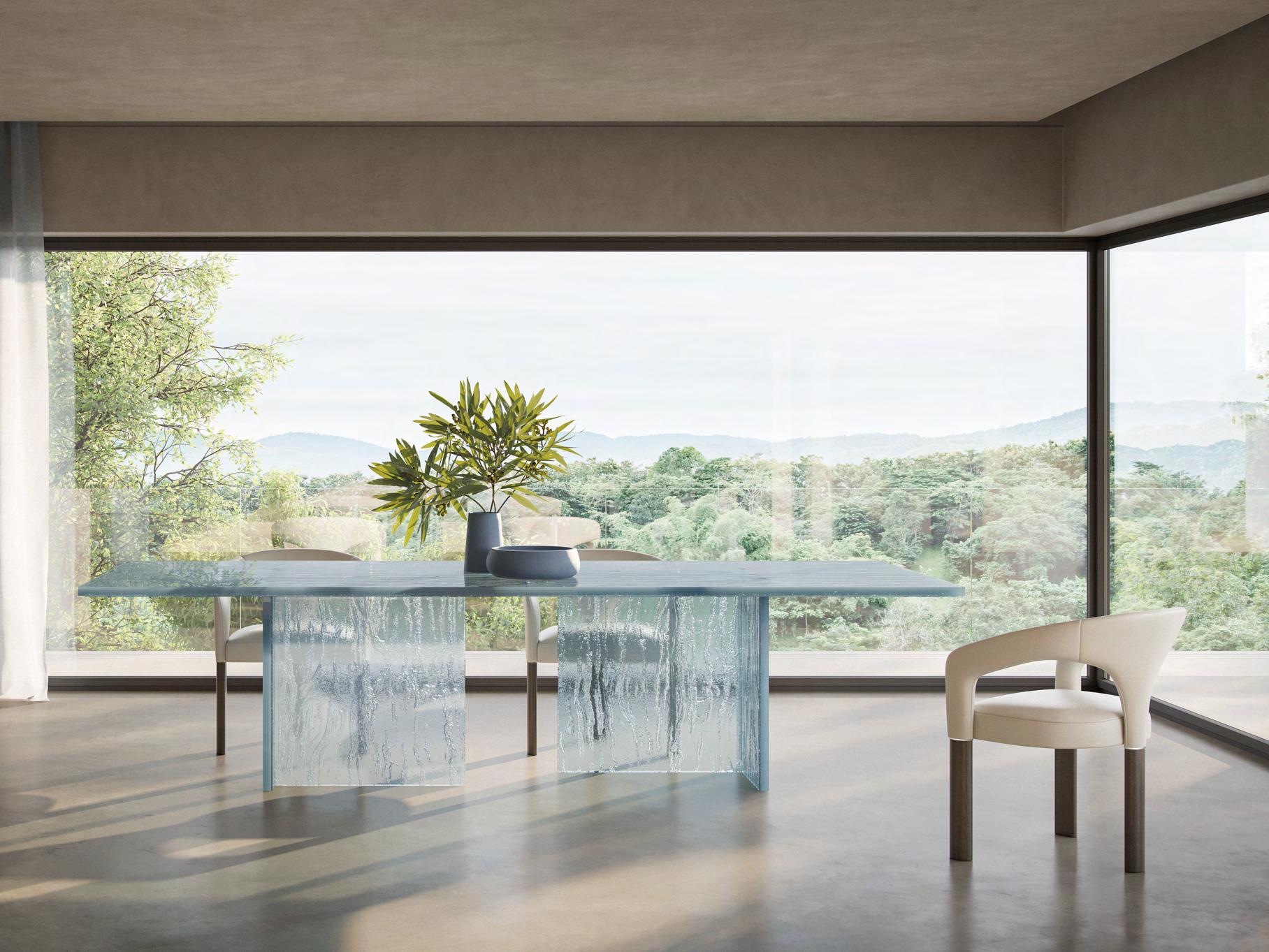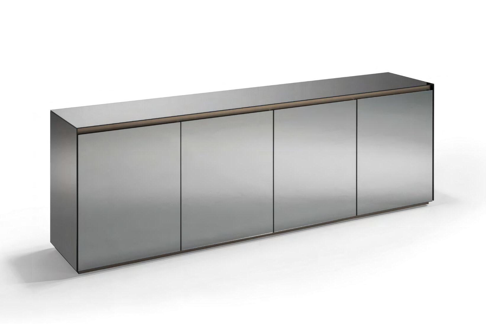 Quattro ante a battente e ripiani interni in vetro trasparente.