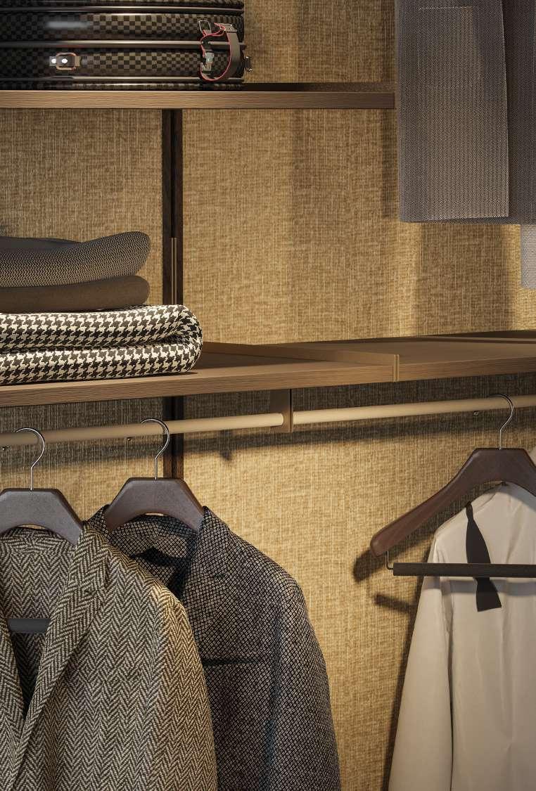 Elementi funzionali ed eleganti che completano gli accessori per la cabina armadio Wally.