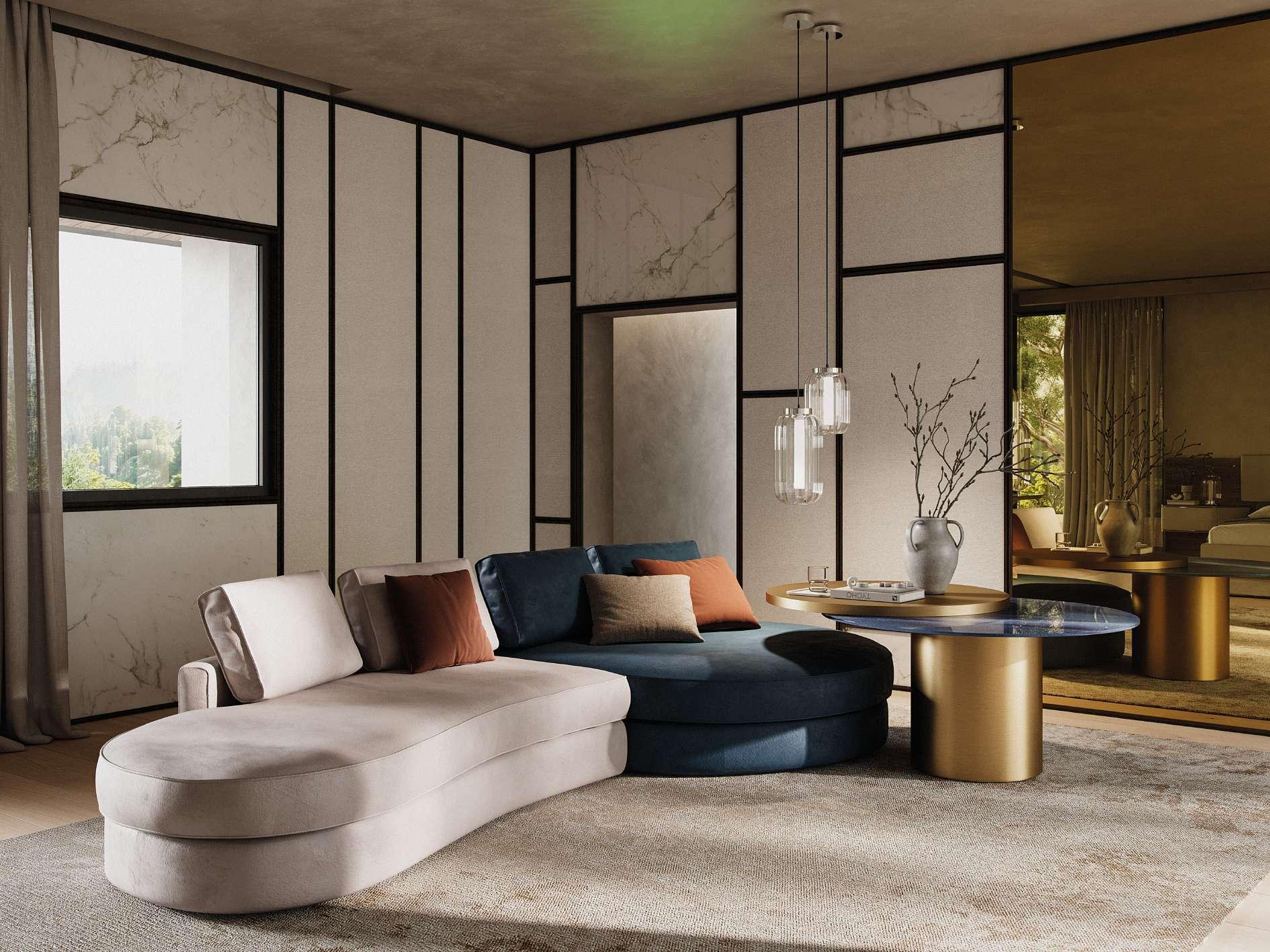 We prioritize natural materials like glass and wood, which provide elegance and durability to the surfaces. Additionally, we use high-quality leathers and fabrics, offering a luxurious feel. These various finishes harmoniously integrate to create a refined and welcoming space, suitable for any interior design style.