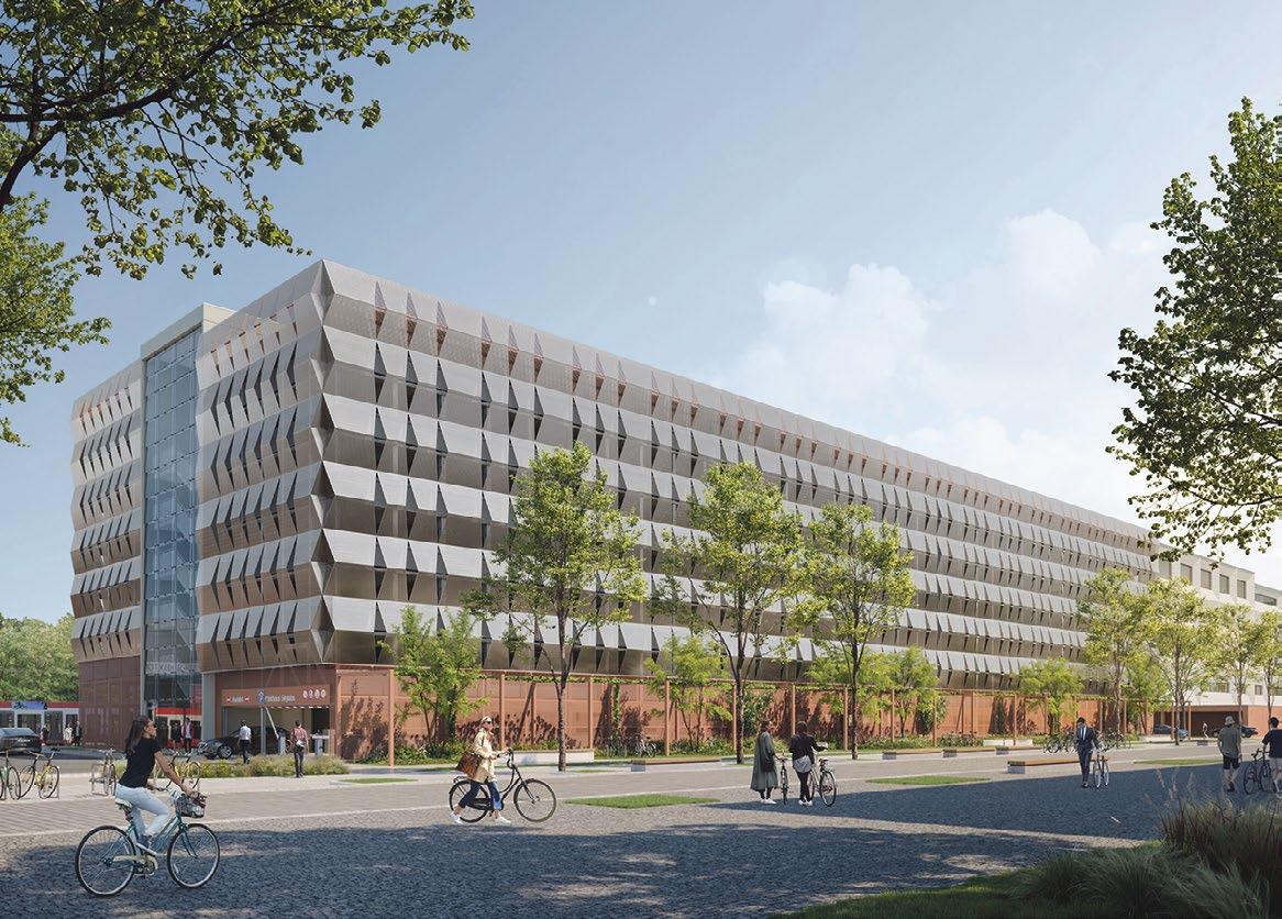 wie moderne Verkehrsknotenpunkte funktionieren. Unter einem Dach vereint der Mobility Hub künftig Carsharing-Angebote, (E-)Bike- und EScooter-Verleih sowie Lademöglichkeiten für E-Bikes und E-Autos. Ein Fahrkartenautomat ermöglicht den direkten Umstieg zum ÖPNV. Der Mobility Hub soll das innerstädtische Verkehrsaufkommen reduzieren und die Aufenthaltsqualität im Quartier steigern. Erst das Zusammenspiel von digitaler Orientierung und baulicher Struktur erzeugt Mobilität, die sich an den Bedürfnissen der Menschen orientiert und Städte lebenswerter macht.