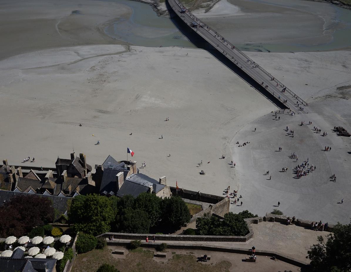 Nadomak ostrva postoje parkinzi za veliki broj vozila i šatl autobusi koji od parkinga voze do ostrva. Moguće je preći taj put i pešice, što ima svoje prednosti, jer imate više vremena da uživate u okolini i silueti ostrva-manastira koja se polako obznanjuje. Pazite samo, ovde je plima zaista velika i brza, ako se udaljite od puta kojim ide autobus, lako se možete naći umesto na kopnu, u vodi.