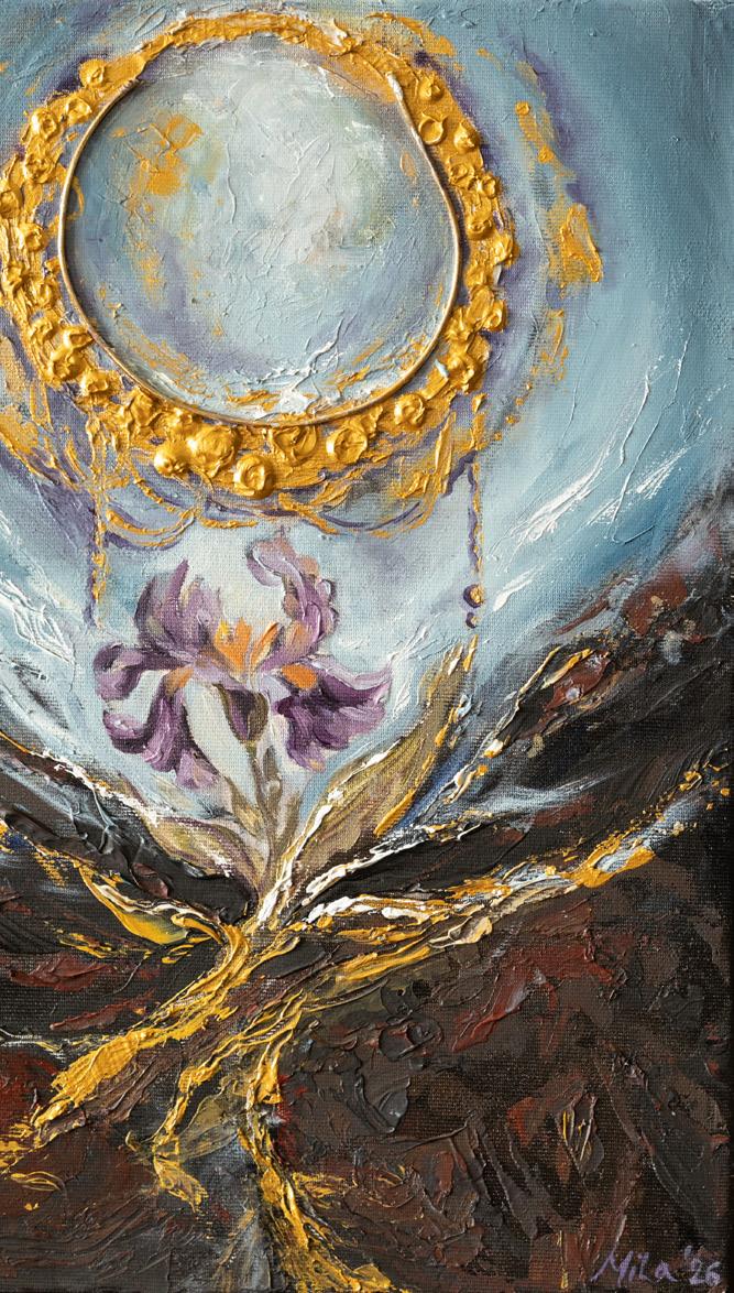 Klimt lirično ovekovečava čas sabiranja dve sudbine u jednu, oživljavajući bliskost kao simbol dublje, sakralne ljubavi koja povezuje čitav univerzum.