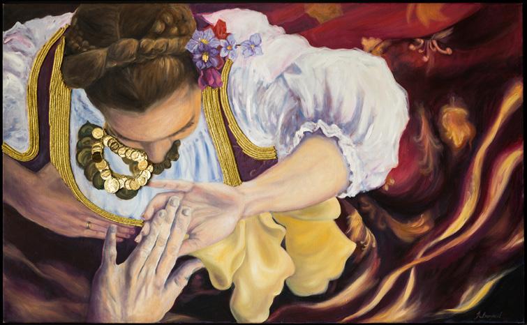 Vrlo verovatno jedna od prvih asocijacija na ovako uzvišeno poimanje zagrljaja jeste Klimtov Poljubac. U tom čuvenom prizoru dvoje ljubavnika stoje priljubljeni, dok se obris jedne figure preliva u drugu, stapajući ih u jednu, gotovo amorfnu celinu. Obavijeni su bezmernim zlatom, u prostoru bez horizonta i granica, kao da stoje na samom rubu univerzuma i upravo tu njihov zagrljaj poprima osećaj utočišta. Ornamenti na njihovim haljinama nagoveštavaju susret dva principa: oštri, geometrijski oblici muškarčeve odore i meki motivi na ženinoj haljini uspostavljaju ravnotežu muškog i ženskog načela, koja se poput jin-janga međusobno prožimaju.