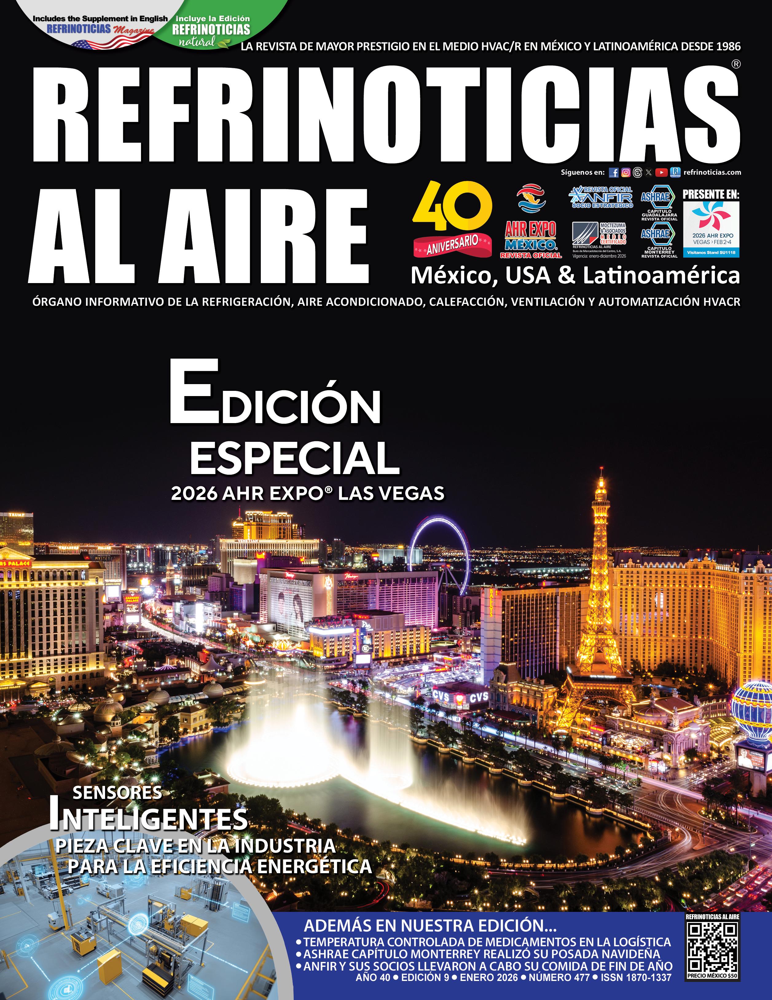 HVAC/R. PERIODICIDAD MENSUAL. NUMERO DE CERTIFICADO DE RESERVA OTORGADO POR EL INSTITUTO NACIONAL DE DERECHOS DE AUTOR: 04-2013-102217590300-102. NUMERO DE CERTIFICADO DE LICITUD DE TITULO Y CONTENIDO: 17387. FRANQUEO PAGADO PUBLICACION PERIODICA PERMISO NUMERO: PP09-0052, CARACTERISTICAS: 228551512, REGISTRO POSTAL IMPRESOS AUTORIZADO POR SEPOMEX. LA EDITORIAL EXIME SU RESPONSABILIDAD SOBRE EL DETERIORO O DAÑOS QUE PUEDA SUFRIR EL MATERIAL MECANICO O ELECTRONICO PROPORCIONADO POR EL CLIENTE PARA EL USO O LA ELABORACIÓN DE ARTICULOS O ANUNCIOS PUBLICITARIOS EN REFRINOTICIAS AL AIRE, POR LO QUE NO PROCEDERA RECLAMO ALGUNO EN SU DEVOLUCIÓN AL RESPECTO. LOS ANUNCIOS, LISTADOS Y DEMAS DATOS COMERCIALES CONTENIDOS EN ESTA PUBLICACIÓN SON UNICAMENTE DE CARACTER INFORMATIVO Y EL EDITOR NO ASUME NINGUNA RESPONSABILIDAD RESPECTO DE ELLOS, ASI MISMO EL EDITOR NO SE RESPONSABILIZA POR LA CONFIBILIDAD, CALIDAD, VERACIDAD O CUALQUIER OFERTA, PROMOCIÓN O CARACTERISTICA DE LOS PRODUCTOS Y SERVICIOS ANUNCIADOS, EL CONTENIDO DE LOS ANUNCIOS ES RESPONSABILIDAD EXCLUSIVA DEL ANUNCIANTE. LA TARDÍA CIRCULACIÓN DE ESTA PUBLICACIÓN NO AFECTA PARA SU ENTREGA POR TRATARSE DE UNA FUENTE DE INFORMACIÓN TÉCNICA CULTURAL QUE POR CAUSAS DE FUERZA MAYOR PUEDE SER SUSCEPTIBLE EN DÍAS DE RETRASO. EL CONTENIDO DE LOS ARTÍCULOS EN ESTA PUBLICACIÓN TODOS SON DE CARACTER CULTURAL INFORMATIVO. LAS OPINIONES EXPRESADAS EN LOS ARTÍCULOS FIRMADOS SON LAS DE LOS AUTORES Y NO REFLEJAN NECESARIAMENTE LOS PUNTOS DE VISTA DE REFRINOTICIAS AL AIRE O DE LA EDITORIAL. EN REFRINOTICIAS AL AIRE NO RENTAMOS NI VENDEMOS BAJO NINGUNA CIRCUNSTANCIA NUESTRAS BASES DE DATOS. SUS DATOS DE ENTREGA SON ESTRICTAMENTE CONFIDENCIALES Y ESTAN PROTEGIDOS BAJO NUESTRO AVISO DE PRIVACIDAD VIGENTE CONSULTABLE EN: WWW. REFRINOTICIAS.COM. DOMICILIO DE LA PUBLICACIÓN: PLAYA REVOLCADERO 222, COL. REFORMA IZTACCIHUATL NORTE, C.P. 08810, CDMX. IMPRESO EN: GRUPO IMPRESOR CONDOR, AZAFRAN 40, COL. GRANJAS MÉXICO, C.P. 08400, CDMX. DISTRIBUIDOR: OFICINA RECEPTORA SEPOMEX HIGUERA 23 INT. BARRIO LA CONCEPCIÓN, COYOACAN, C.P. 04020, CDMX.